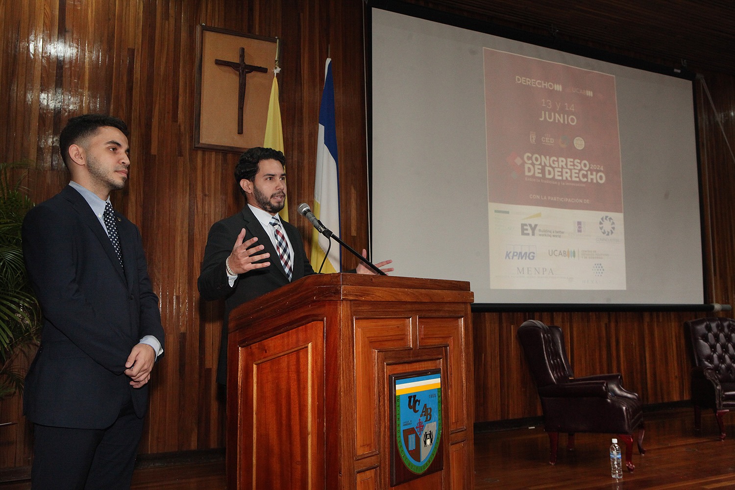 Daniel Yánez y Nelson Flores, miembros del comité organizador, resaltaron que reactivar el Congreso -realizado en el marco de la Semana Empresarial UCAb 2024– fue un «reto ambicioso»que les generó gran satisfacción, porque estas actividades «nutren la experiencia universitaria, dinamizan el conocimiento y pueden ayudar a delinear un camino profesional a los abogados en formación».