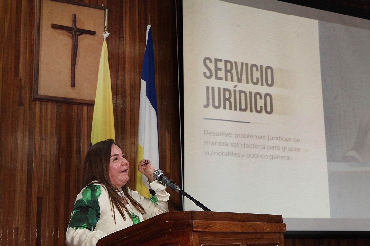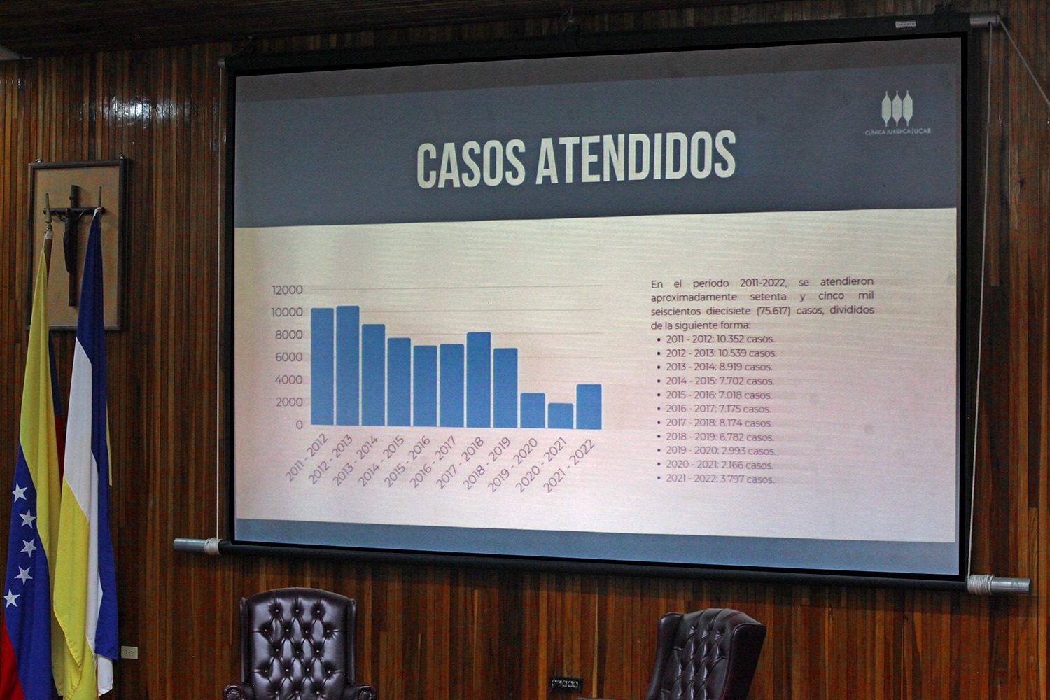 Lehmann describió las cinco iniciativas de la Clínica Jurídica en la que los futuros abogados ponen en práctica sus conocimientos: Servicio jurídico, Unidad de conciliación, Voluntariado, Programas de formación, Defensivos Niños, Niñas y Adolescentes