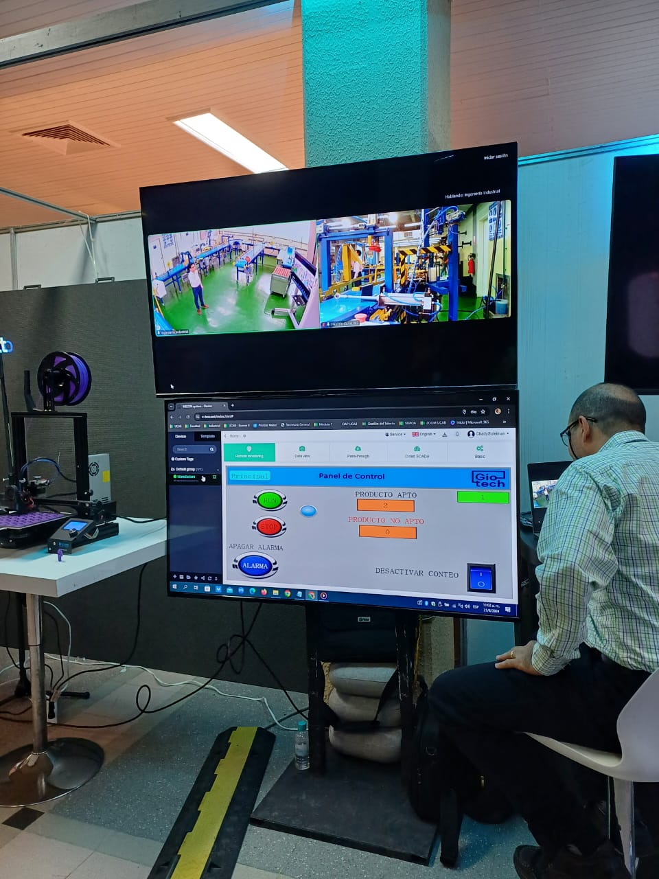 En la demostración, el profesor dio a conocer el sistema de llenado de envases y el de control con videocámaras conectado por internet del que se compone este laboratorio, tecnología que evidencia su diseño industrial 4.0 y 5.0.
