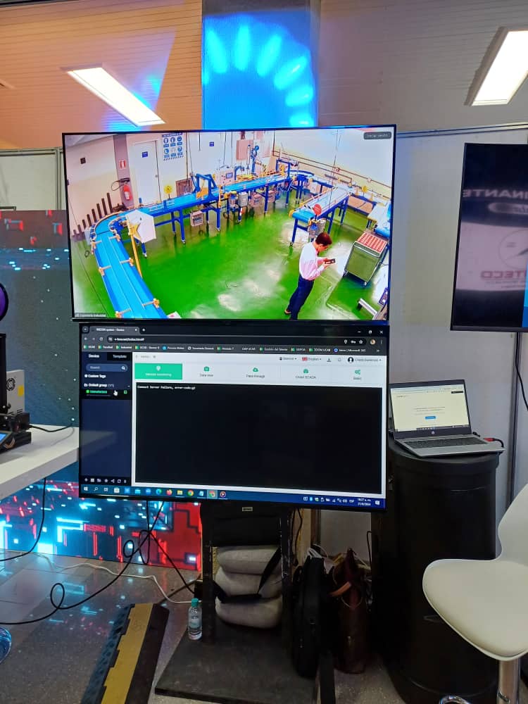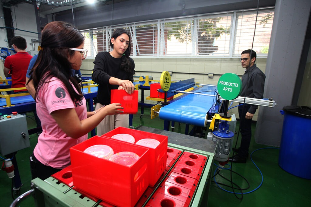 Pero la gran estrella de la exhibición de la UCAB fue el Laboratorio de Manufactura Flexible, espacio formativo que brinda la posibilidad de conocer, de forma realista, cómo funciona una línea de producción con tecnología 5.0, es decir, controlada de forma automatizada y remota, vía internet, y con capacidad para arrojar y procesar información del proceso.