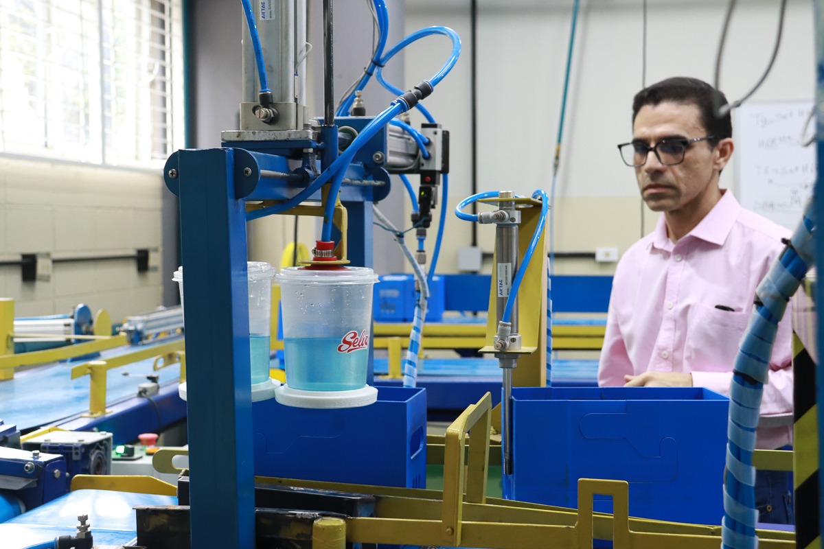 En la demostración, el profesor dio a conocer el sistema de llenado de envases y el de control con videocámaras conectado por internet del que se compone este laboratorio, tecnología que evidencia su diseño industrial 4.0 y 5.0.