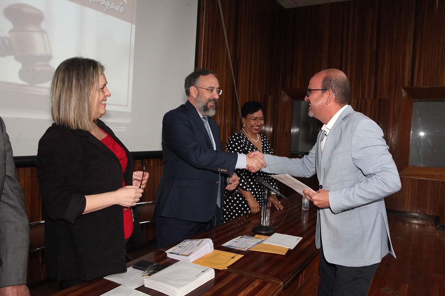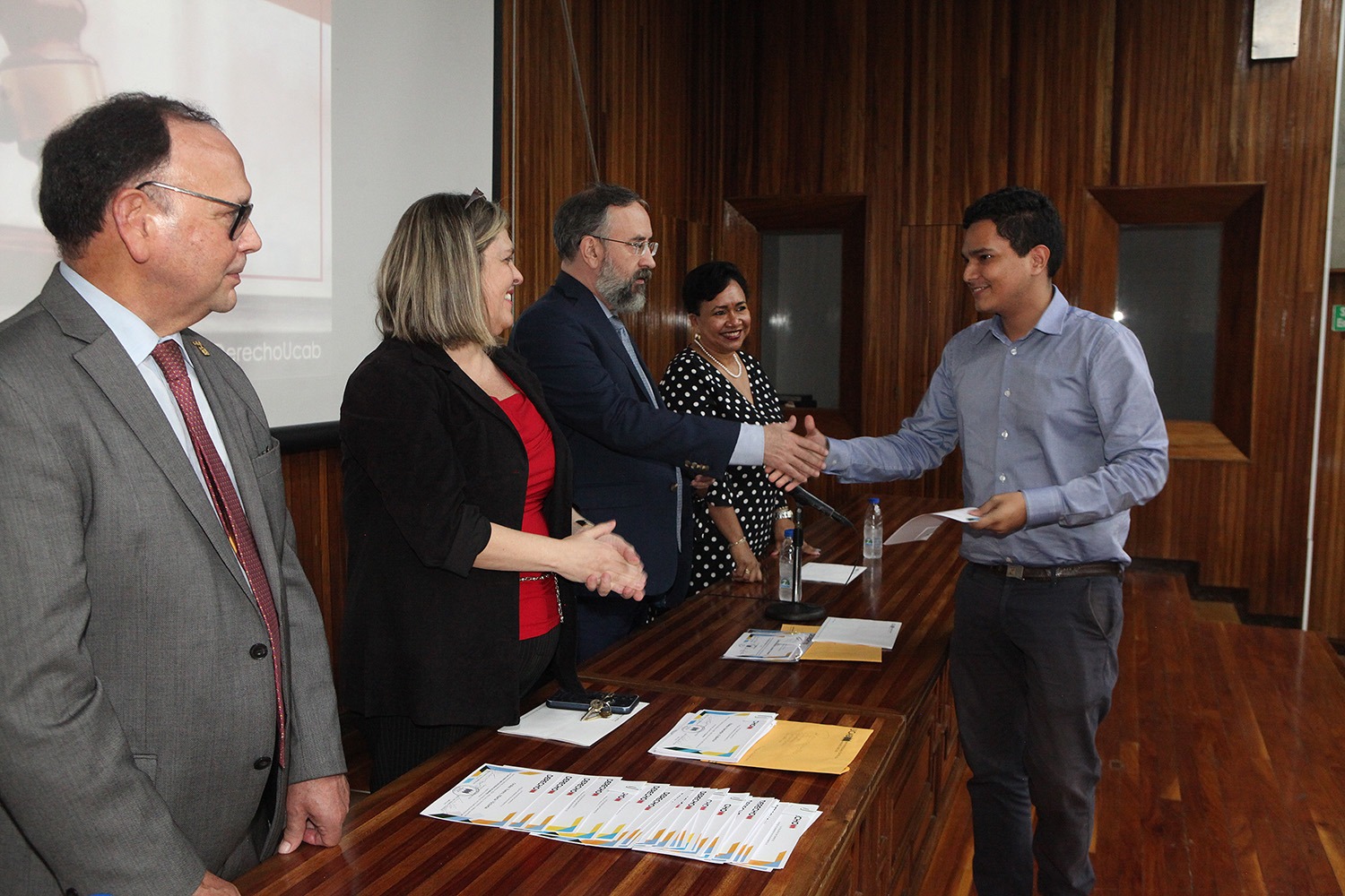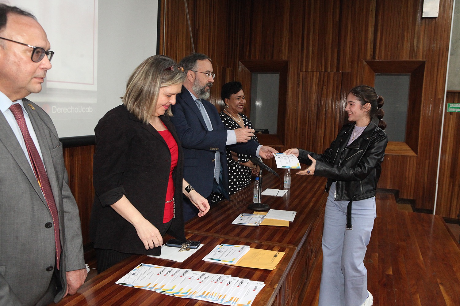 Entre los profesores que asistieron para recibir sus diplomas estuvieron, además del rector Peraza y el propio decano Casal, la secretaria de la UCAB, Magaly Vásquez; la directora de la Escuela de Derecho, María Lidia Álvarez; la expresidenta de la Corte Suprema de Justicia, Cecilia Sosa Gómez; el director del Instituto de Investigaciones Jurídicas, César Carballo Mena, y la directora del Centro de Derechos Humanos (CDH), Carla Serrano.