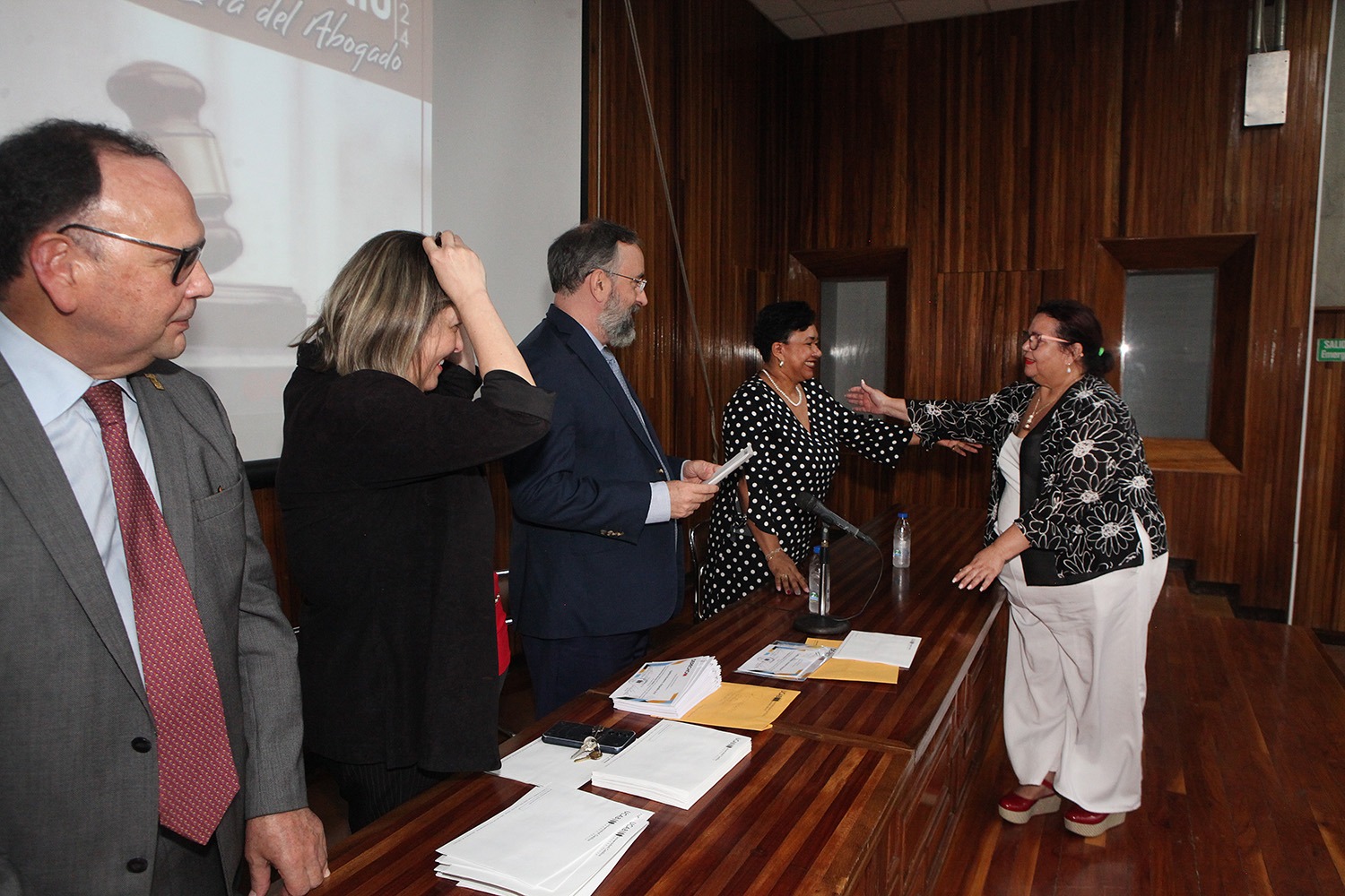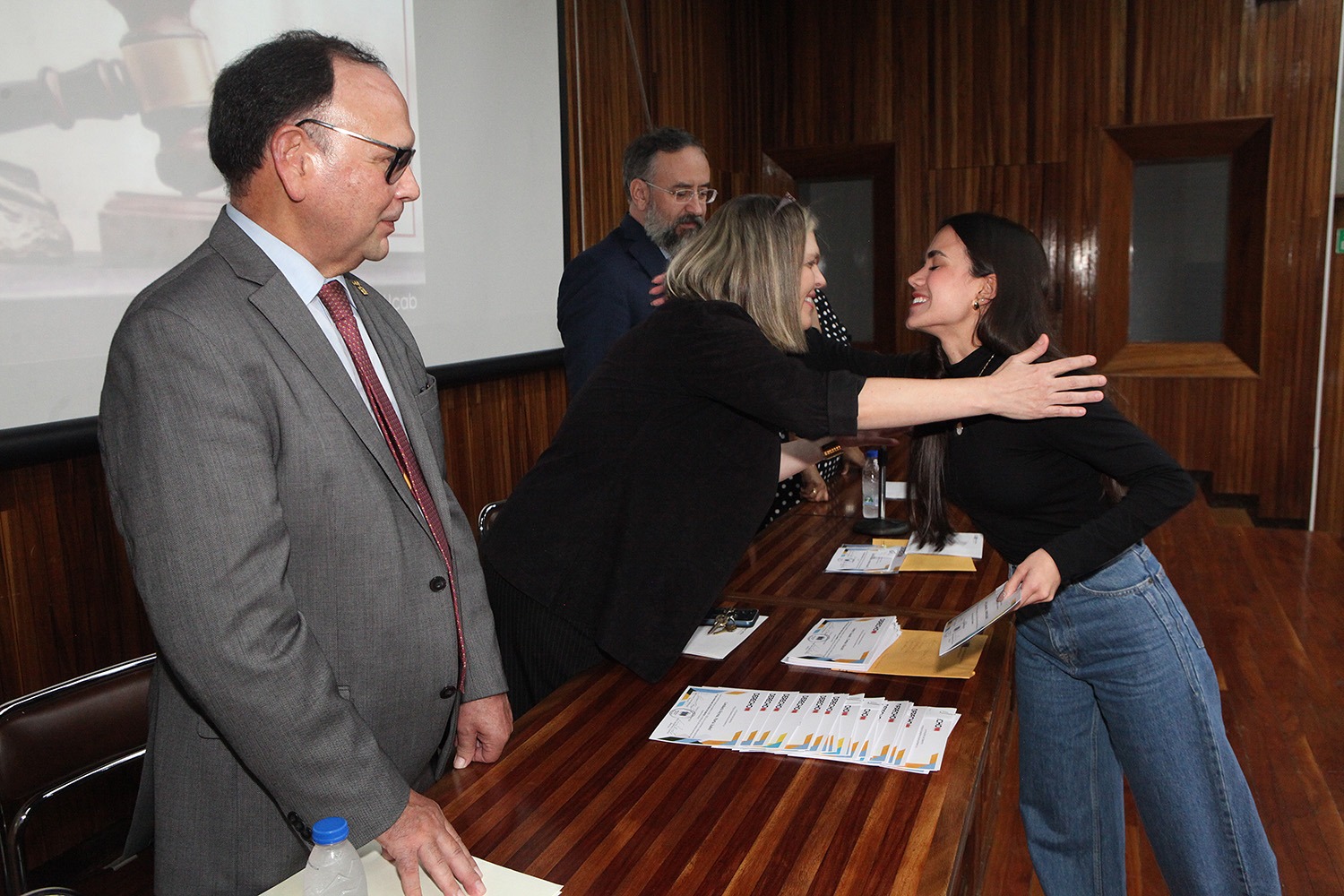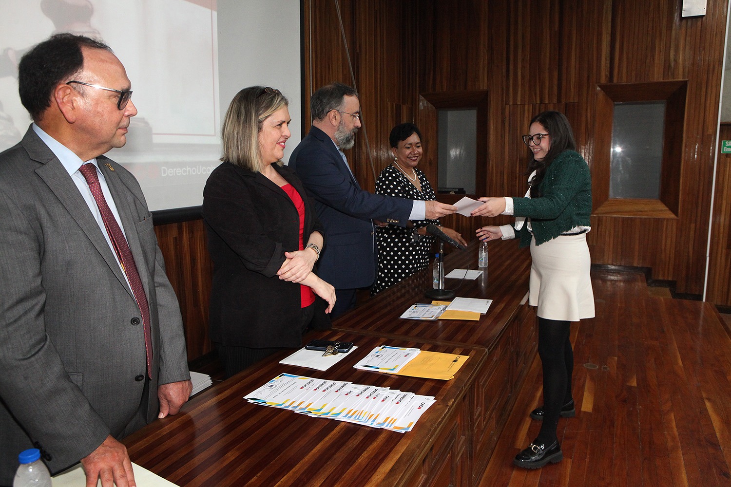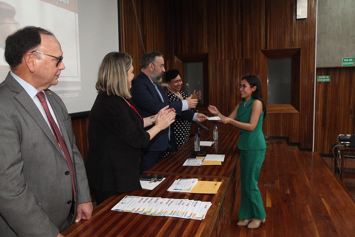 Entre los profesores que asistieron para recibir sus diplomas estuvieron, además del rector Peraza y el propio decano Casal, la secretaria de la UCAB, Magaly Vásquez; la directora de la Escuela de Derecho, María Lidia Álvarez; la expresidenta de la Corte Suprema de Justicia, Cecilia Sosa Gómez; el director del Instituto de Investigaciones Jurídicas, César Carballo Mena, y la directora del Centro de Derechos Humanos (CDH), Carla Serrano.