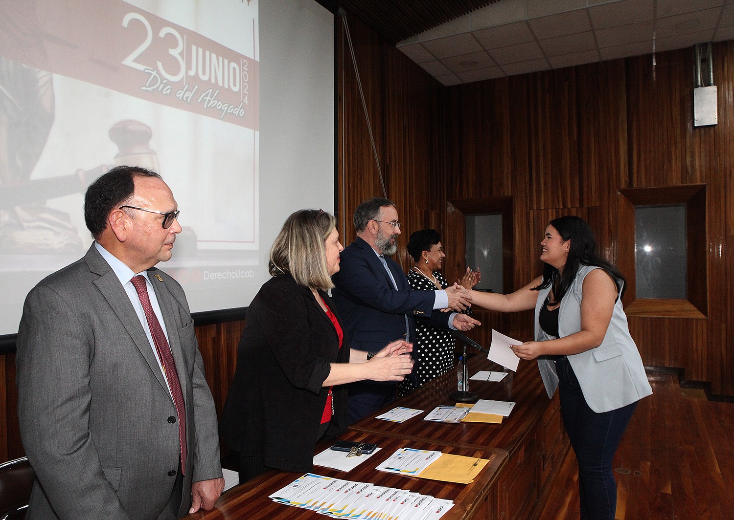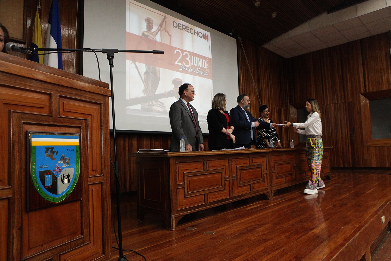 Desde 1974, por decreto presidencial de Rafael Caldera, cada 23 de junio se conmemora en Venezuela el Día del Abogado. A propósito de la fecha, el pasado 25 de junio, la Facultad de Derecho de la Universidad Católica Andrés Bello celebró la fecha con una misa de acción de gracias y un acto de reconocimiento a profesores y estudiantes destacados.