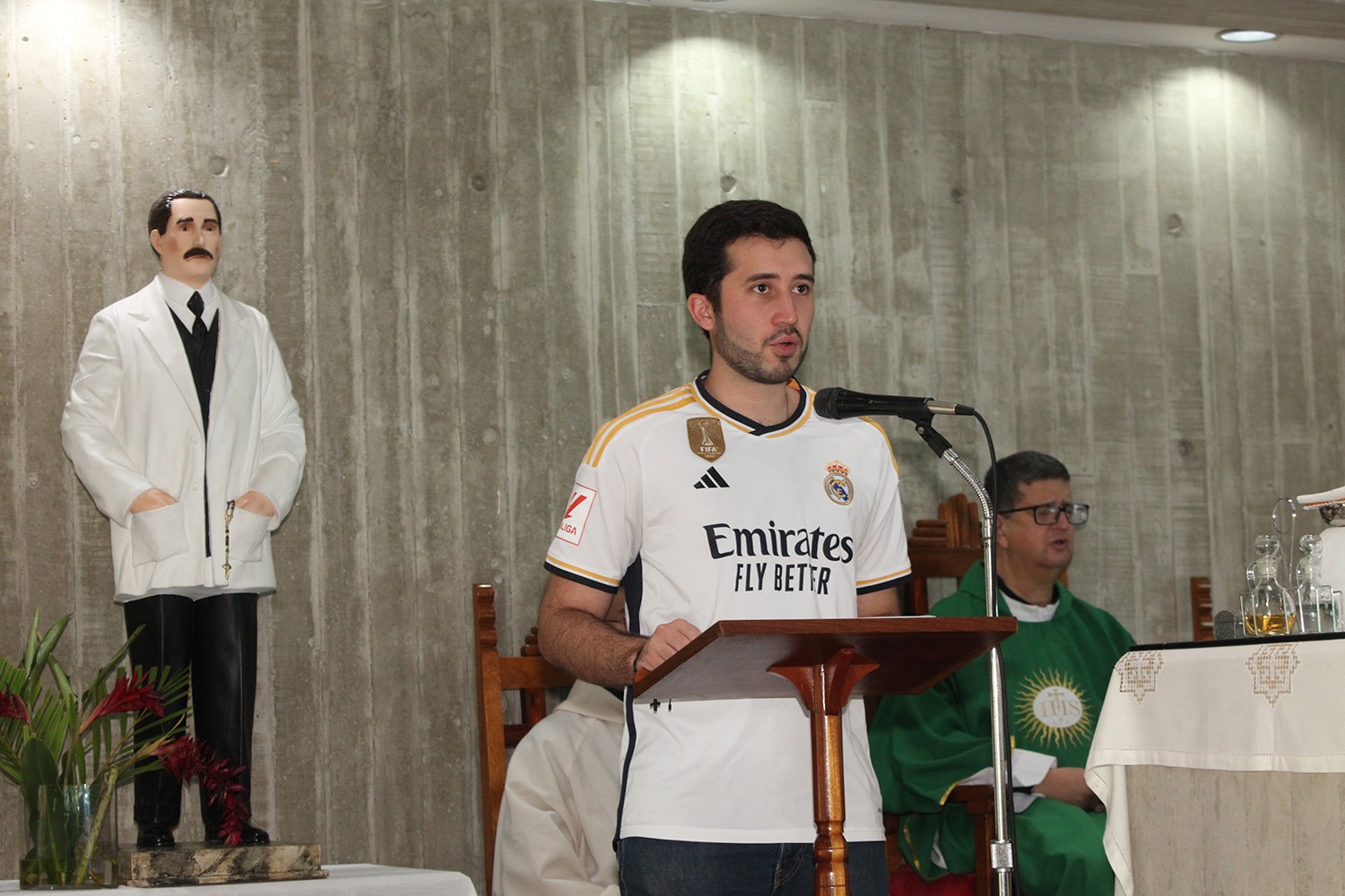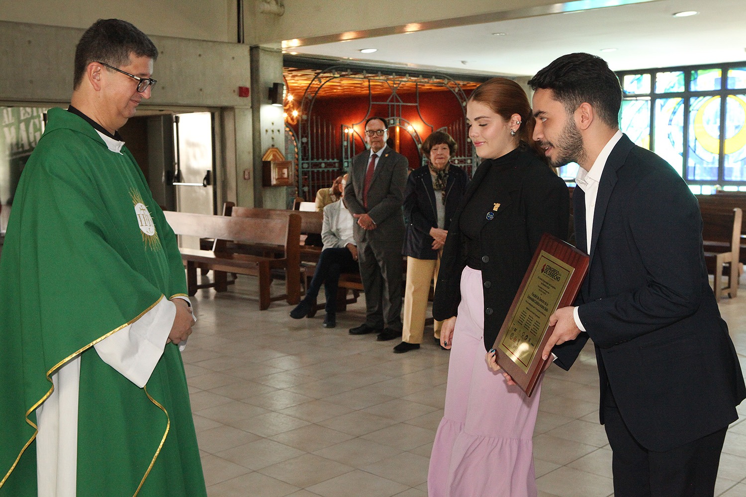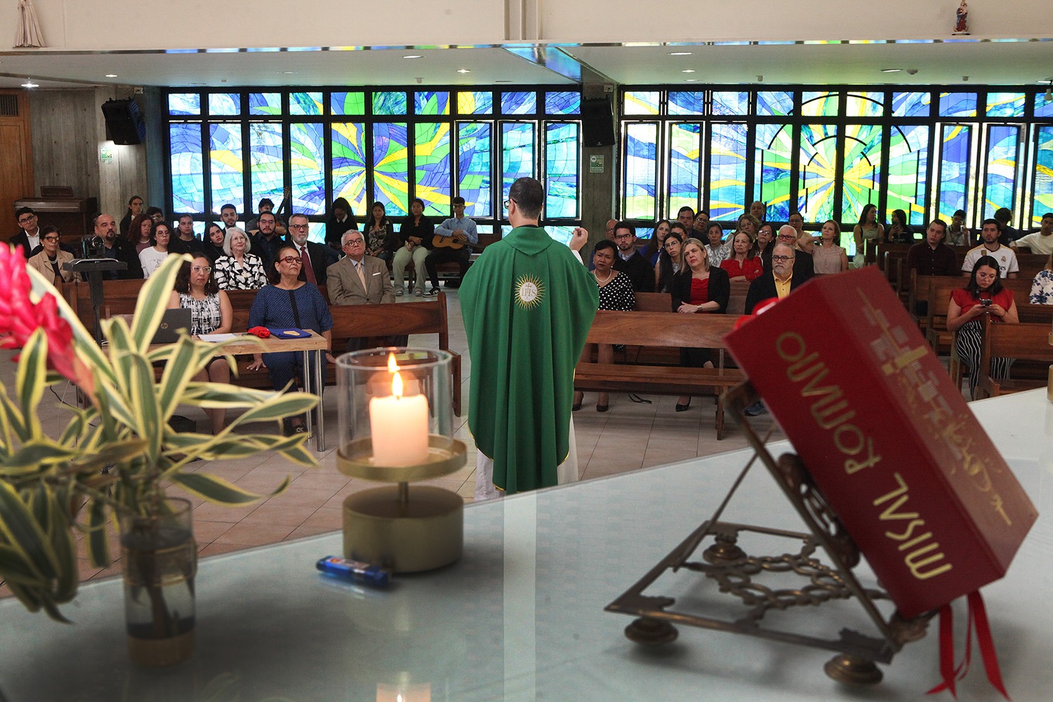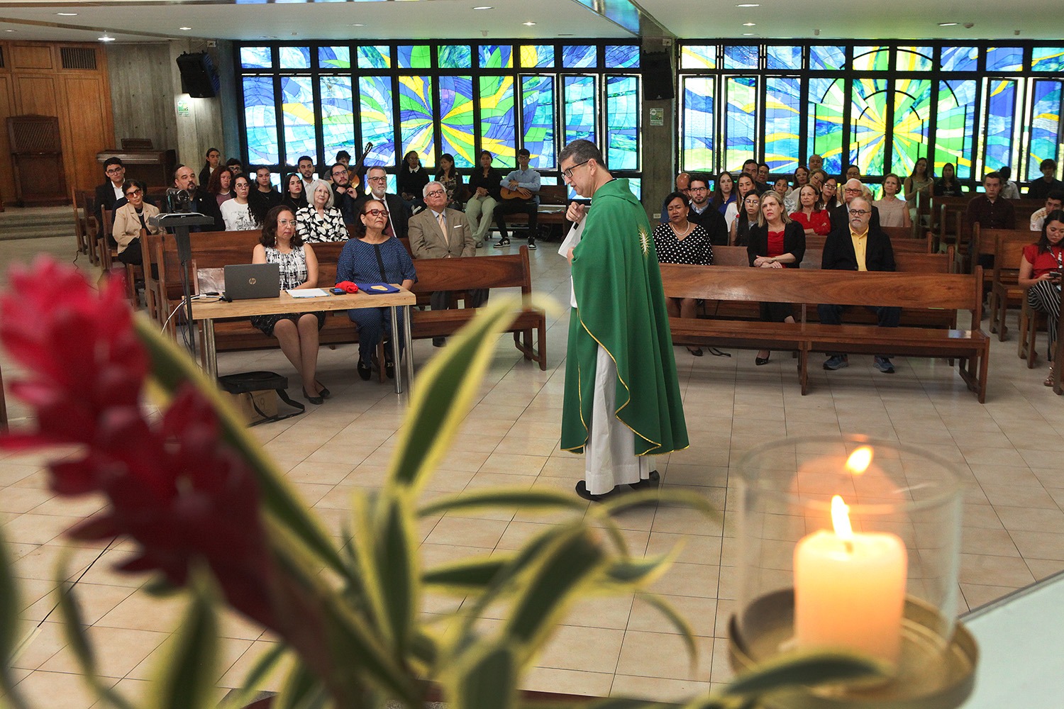 La eucaristía tuvo lugar en la parroquia María Trono de la Sabiduría del campus de Montalbán, donde se congregaron autoridades universitarias, profesores de la Escuela de Derechoy estudiantes.
