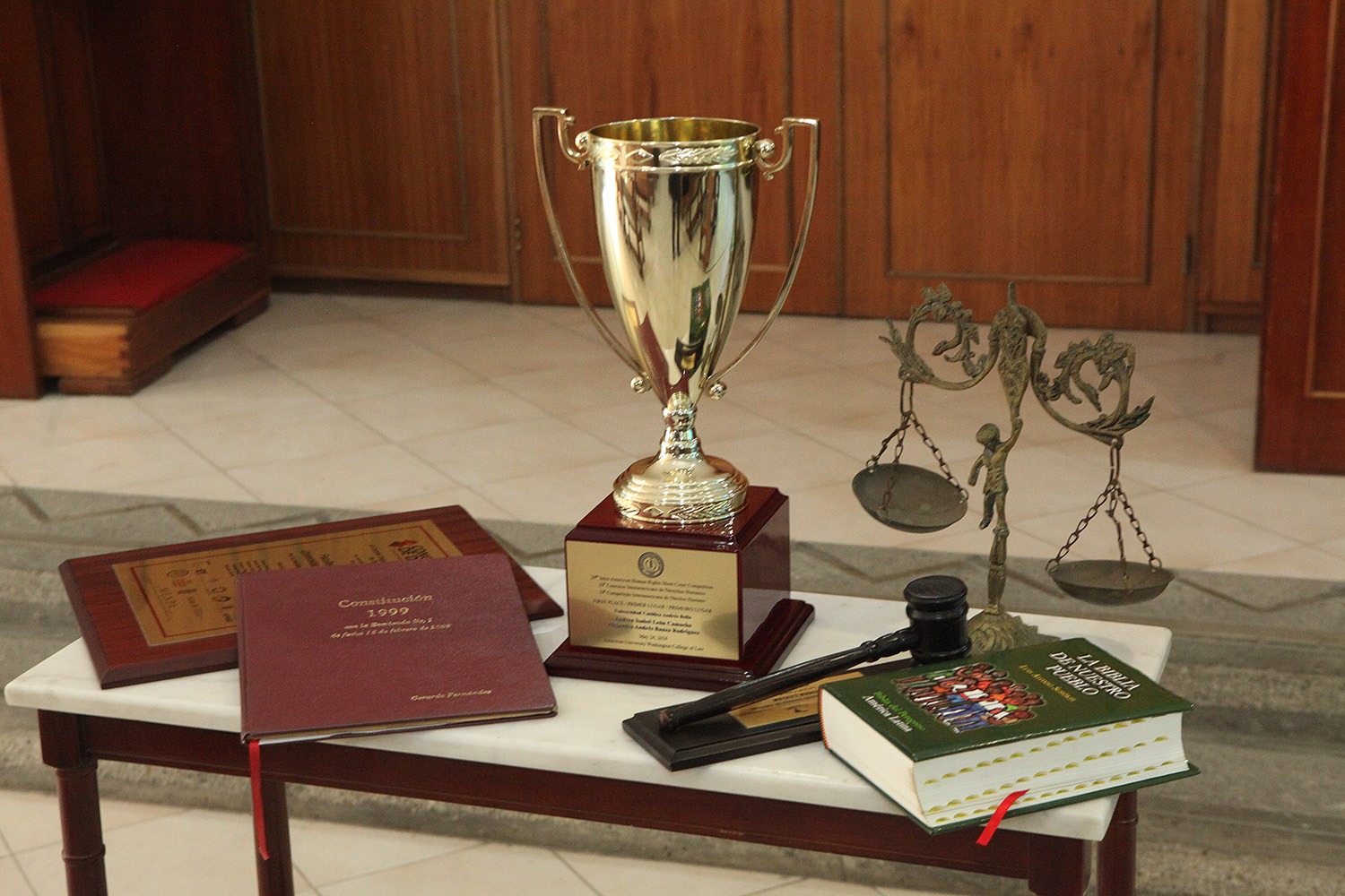 La comunidad de abogados presentó como ofrendas símbolos propios de la profesión, como una balanza que simboliza la justicia y un mazo en representación del poder de un juez, entre otros objetos.