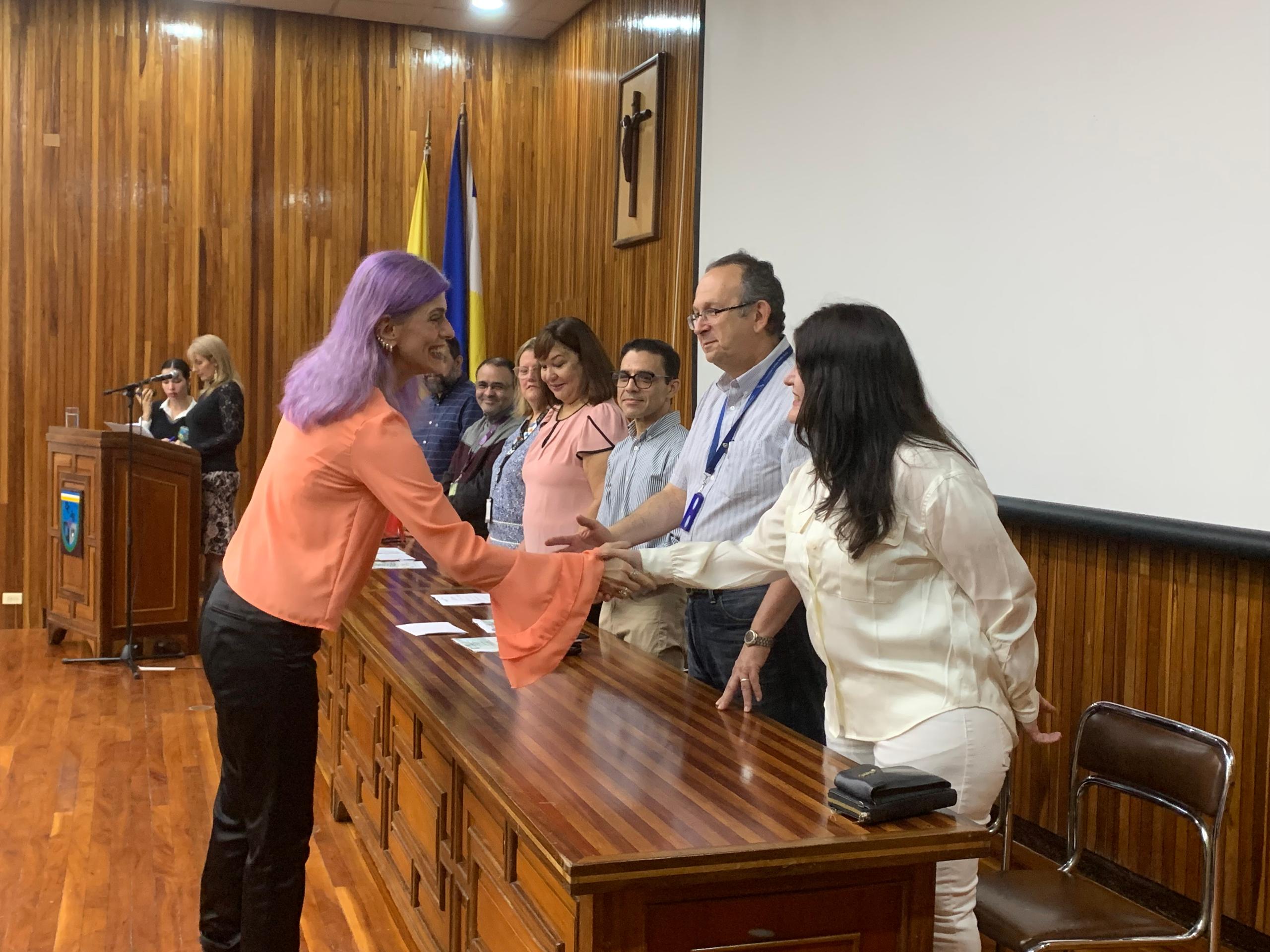 La decana de la Facultad de Ingeniería, Mayra Narváez, extendió sus felicitaciones a todos los homenajeados; reconoció el impacto positivo de sus logros en la comunidad universitaria y su contribución al prestigio de la Facultad.