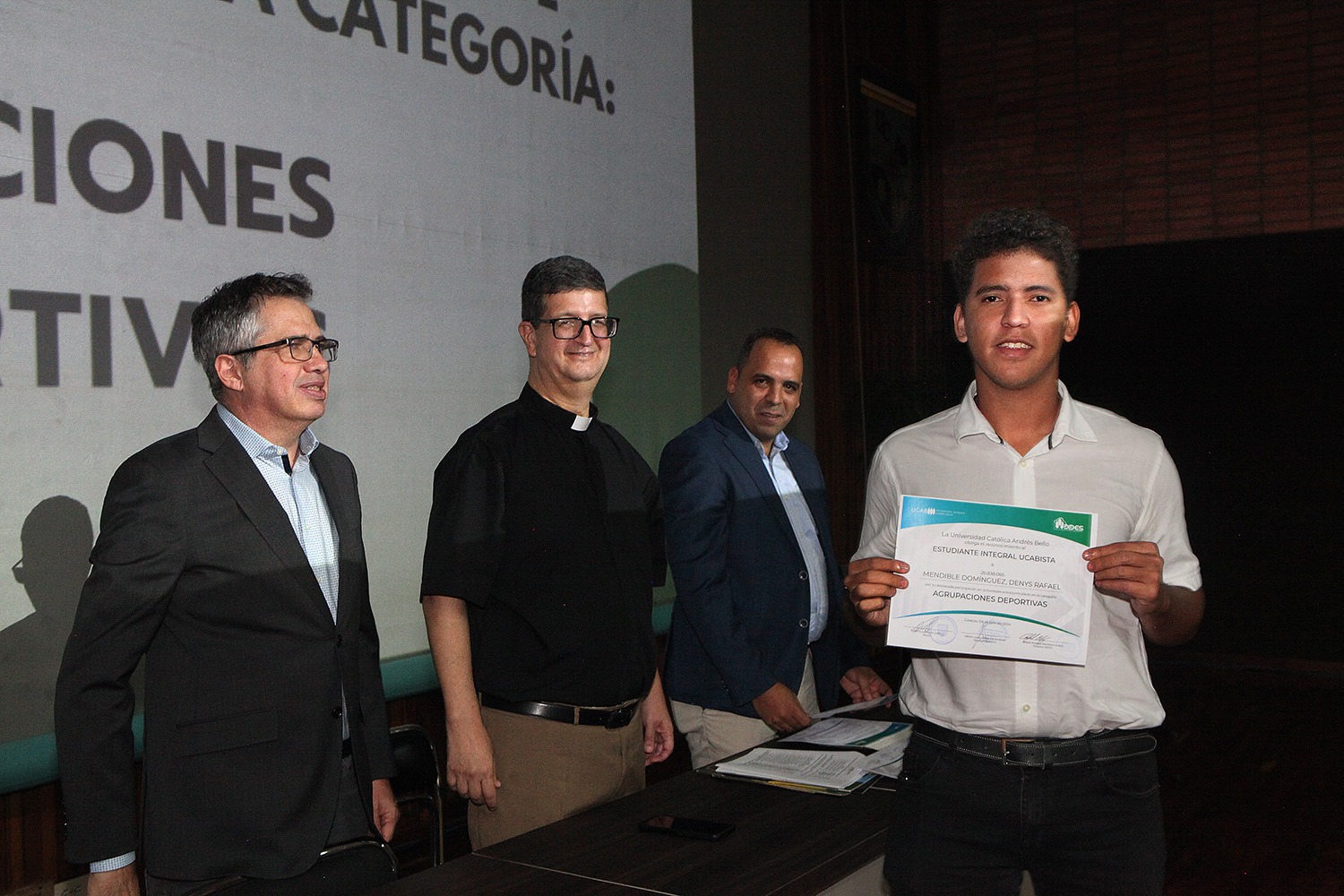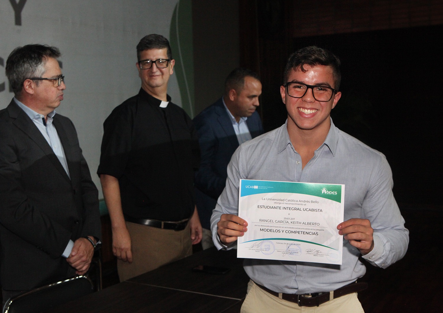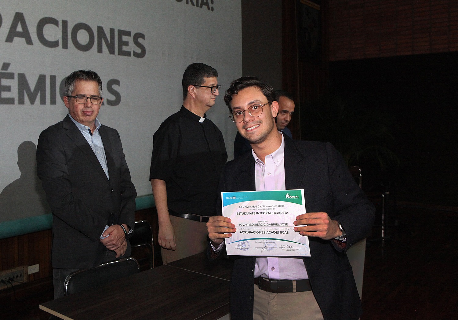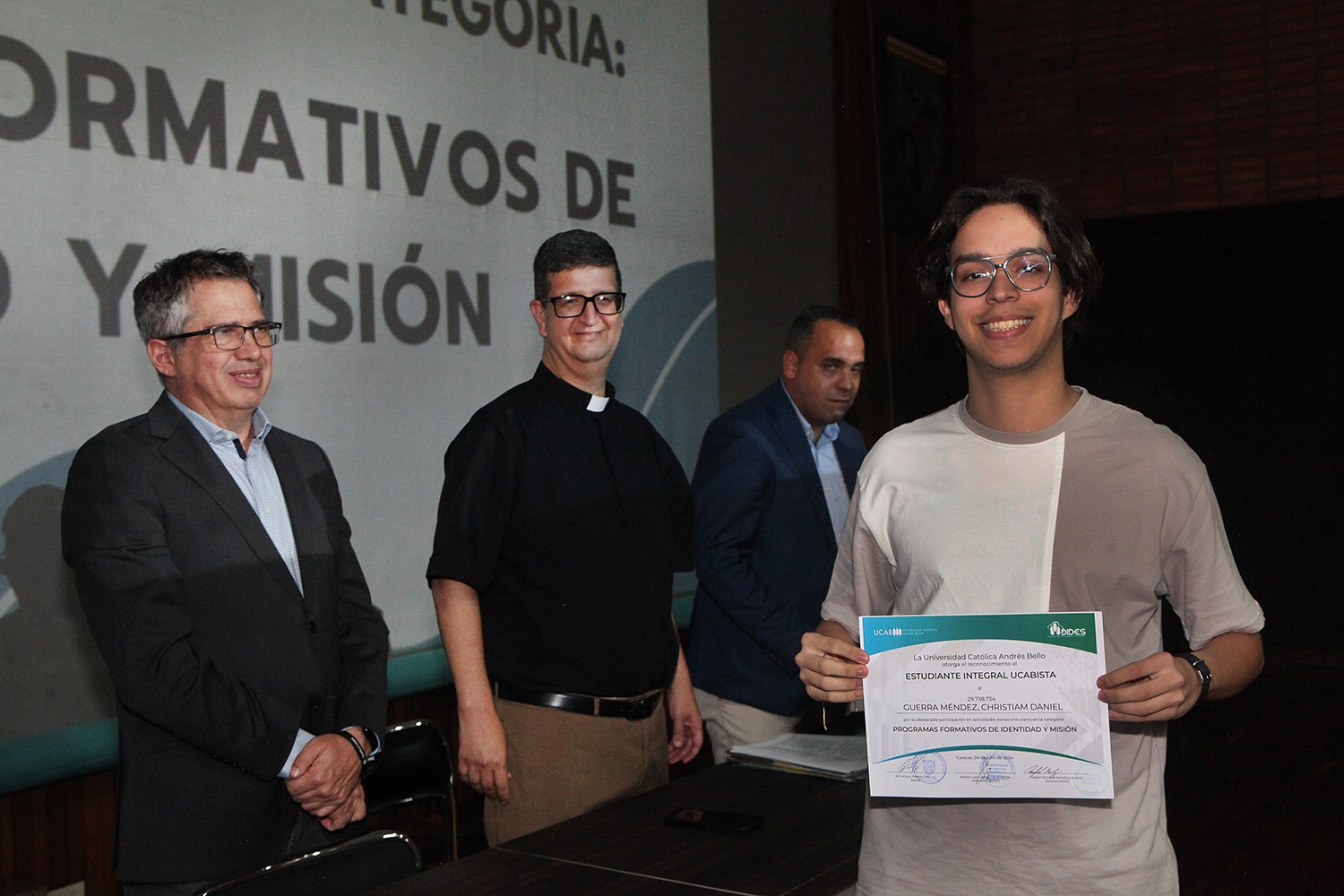 Así lo expresó el rector de la UCAB, Arturo Peraza, S.J., durante la entrega, el 8 de julio, del reconocimiento «Estudiante Integral Ucabista», correspondiente al período 2023-2024, a 57 alumnos de la sede Montalbán, por su participación voluntaria en las diferentes actividades extracurriculares que ofrece la institución.
