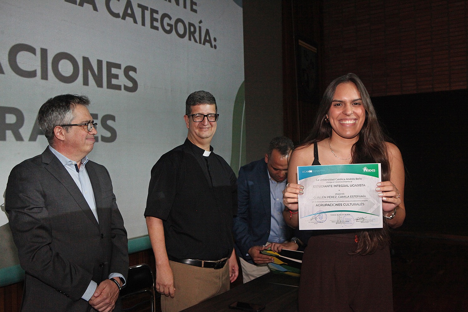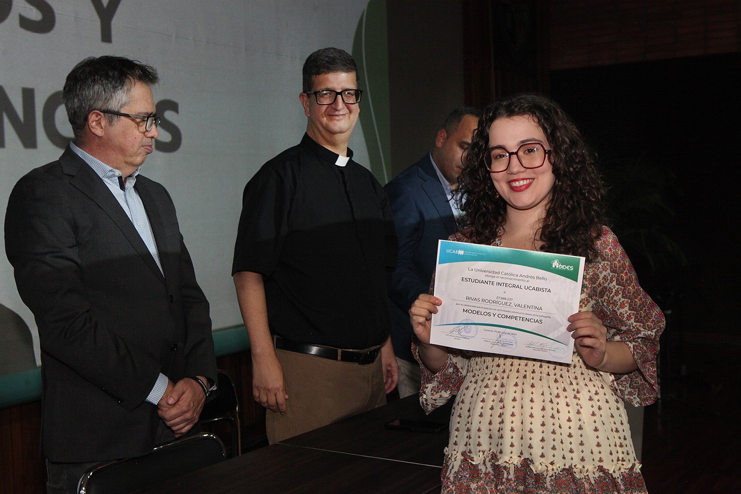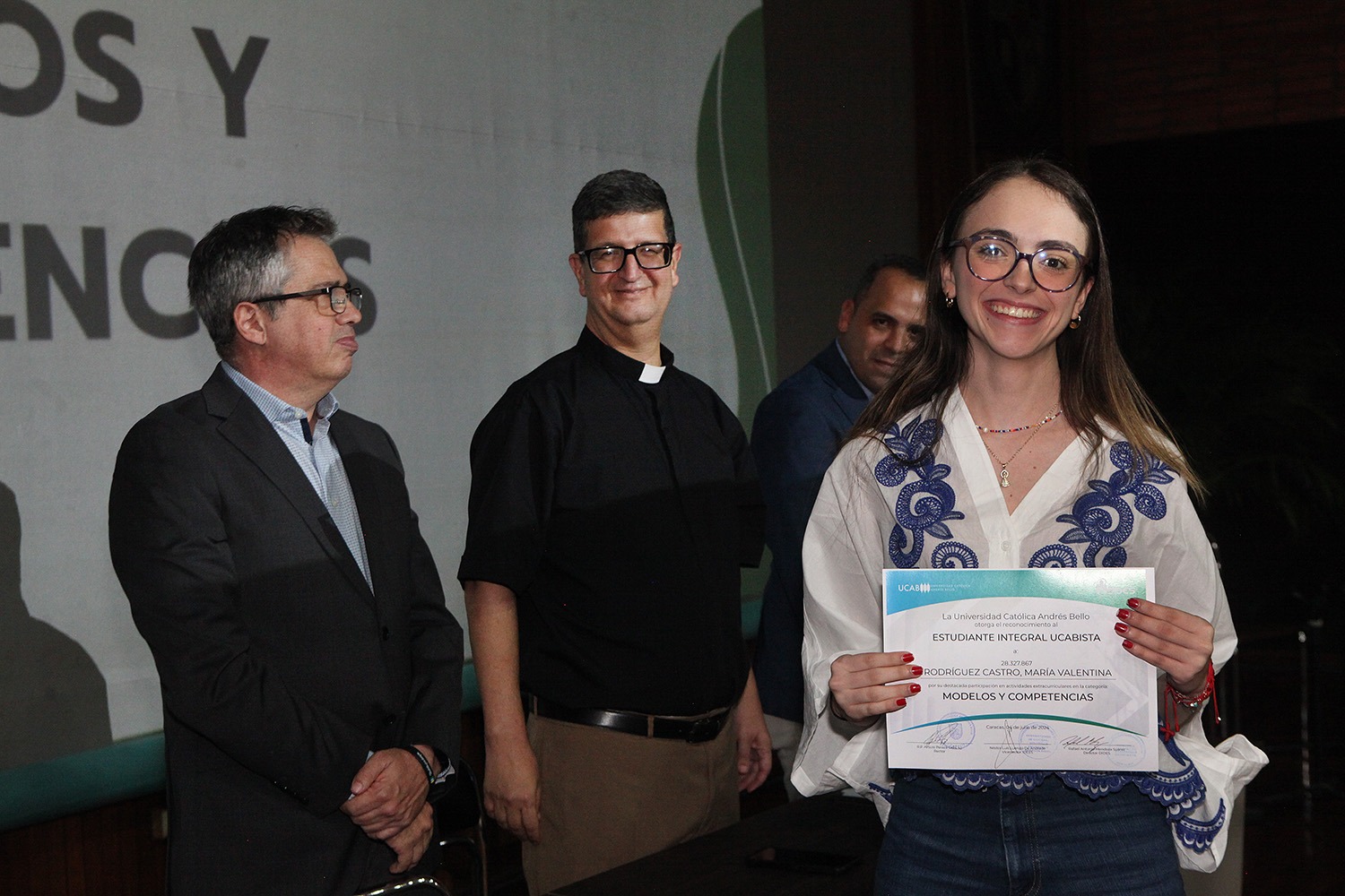 «Significa mucho. En mi familia me han repetido mucho que es importante alcanzar el magis. Y yo siento que la UCAB te da una oportunidades para alcanzarlo y es a través de las actividades extracurriculares. Sé que lo he conseguido y no solo en los espacios de la universidad, sino también afuera representándola en diferentes competencias» señaló la galardonada en las categorías Modelos y competencias y Representación estudiantil.
