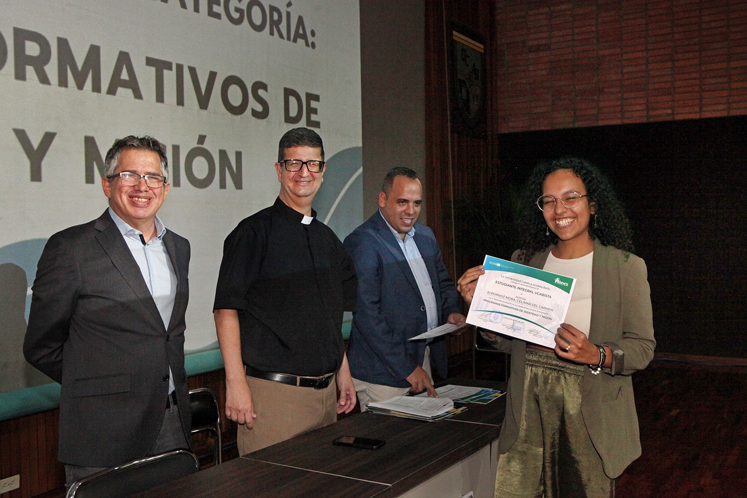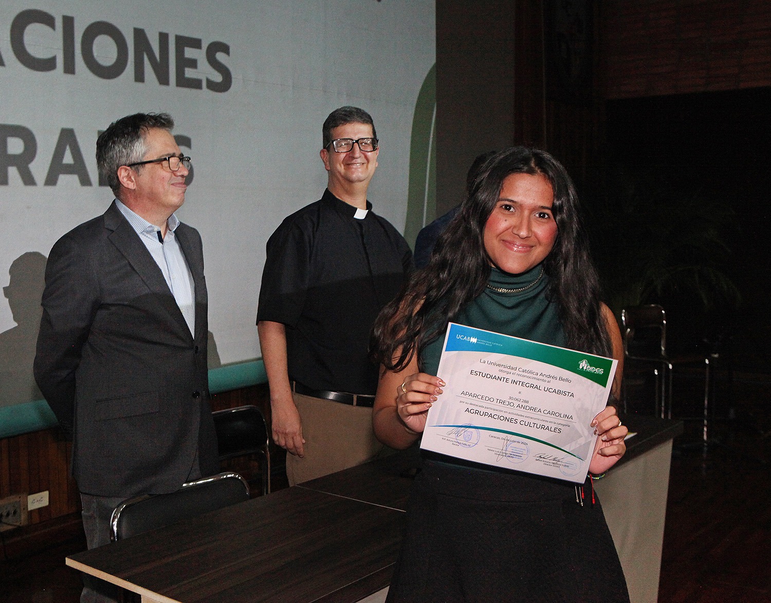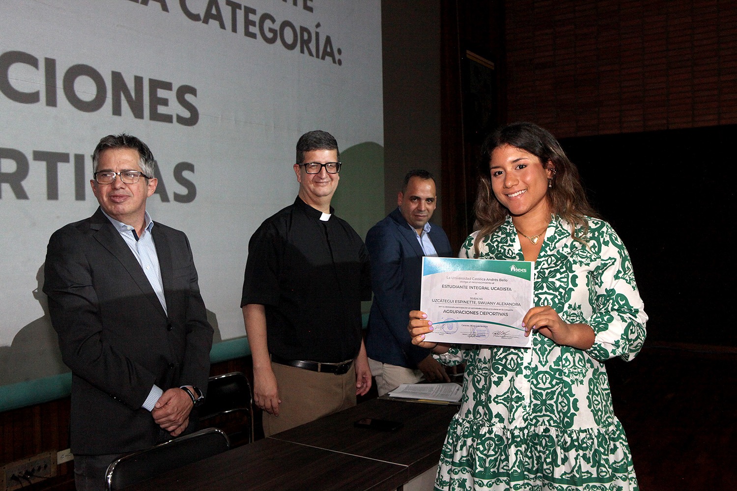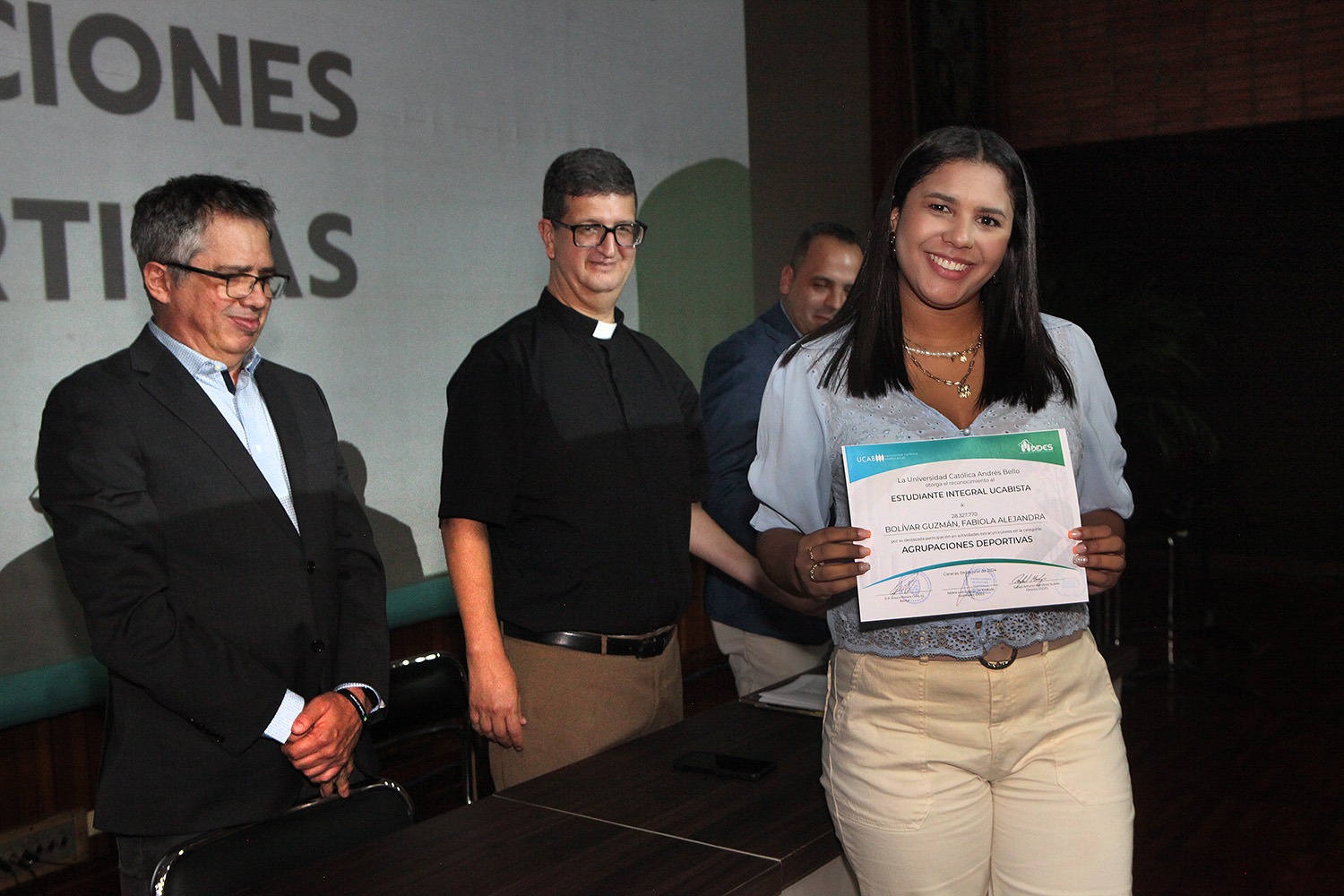 «Significa mucho. En mi familia me han repetido mucho que es importante alcanzar el magis. Y yo siento que la UCAB te da una oportunidades para alcanzarlo y es a través de las actividades extracurriculares. Sé que lo he conseguido y no solo en los espacios de la universidad, sino también afuera representándola en diferentes competencias» señaló la galardonada en las categorías Modelos y competencias y Representación estudiantil.
