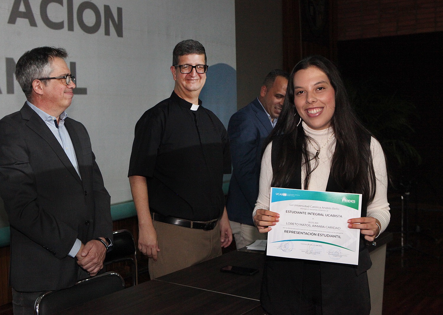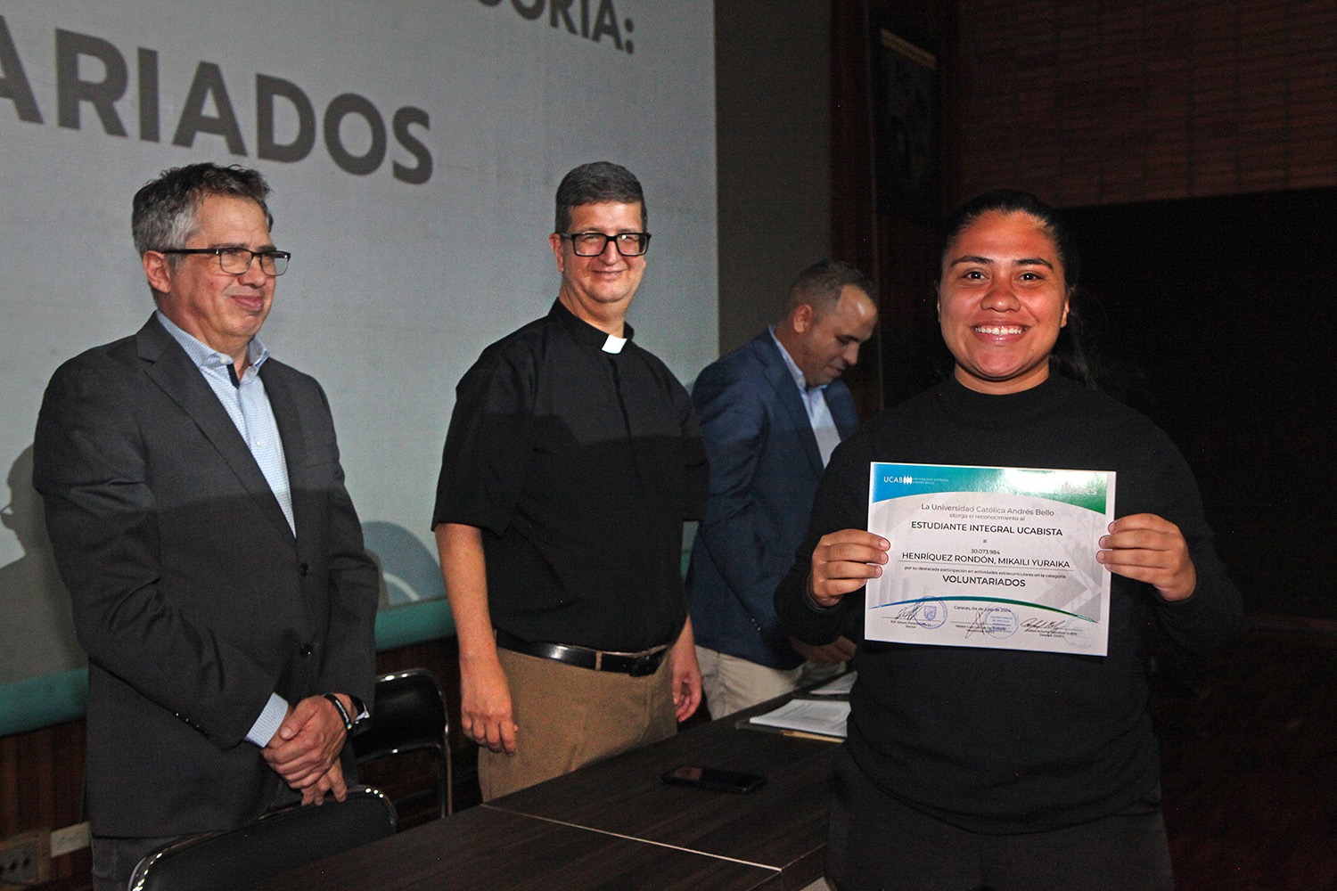 «Al mismo tiempo que se construyen, construyen una idea de sociedad. Y esto es fundamental para generar transformaciones que permitan ver un entorno distinto con múltiples alternativas y posibilidades. He allí donde este modelo de formación que se denomina integral es atractivo, porque potencia sus capacidades como ucabistas y como ciudadanos del país que queremos», puntualizó Mendoza.