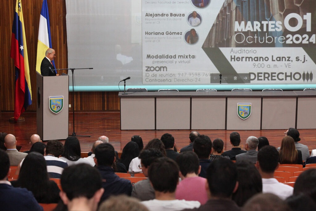 Durante la lección inaugural del período lectivo 2024-2025 de la Facultad, Jesús María Casal destacó la recuperación, por segundo año consecutivo, de la matrícula estudiantil y lo interpretó como «un mensaje que viene desde la sociedad (…) para contribuir a construir un marco institucional en el que el derecho sea fuente y vehículo de la justicia». El profesor Pedro Planchart Pocaterra dictó la clase magistral, titulada «Ética y derecho desde la experiencia»