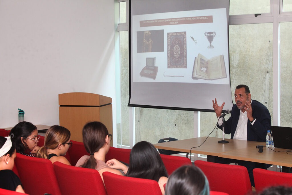Ante un nutrido grupo de estudiantes y profesores de la carrera, alumnos de Comunicación Social y otros miembros de la comunidad universitaria, la clase magistral no solo celebró la historia, sino también su conexión con la literatura y cómo lo que rodea al ser humano -por muy simple que parezca- esconde significados que ayudan a comprender el pasado y, aún más importante, el presente.