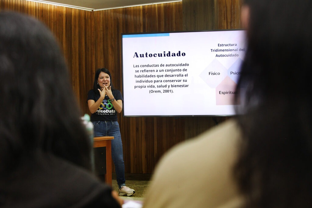 Celibeth Guarín basó su exposición en las recomendaciones de la psicóloga española Cristina Roda, de la Universidad de Almería. También partió de datos incluidos en un Manual de Autocuidado, publicado por la UNICEF y Fundasil, una ONG de El Salvador.