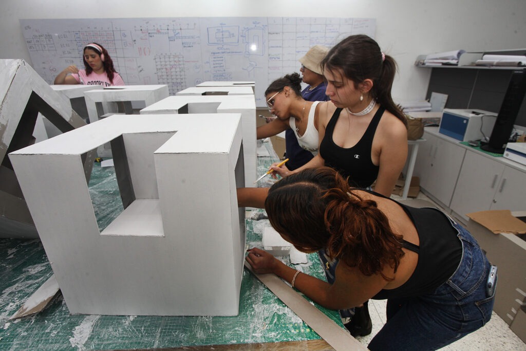 «Lo otro que es muy importante fue el trabajo en equipo. No se podían hacer todas las maquetas de todos los alumnos, así que las piezas más gustadas se llevaron a escala arquitectónica o urbana. Cada estudiante hizo un módulo y después se ensamblaron. La experiencia con el volumen (para estudiantes de Gráfica, Interiores e Industrial) es significativa y se requiere una comprensión absoluta del volumen», recalcó el director.