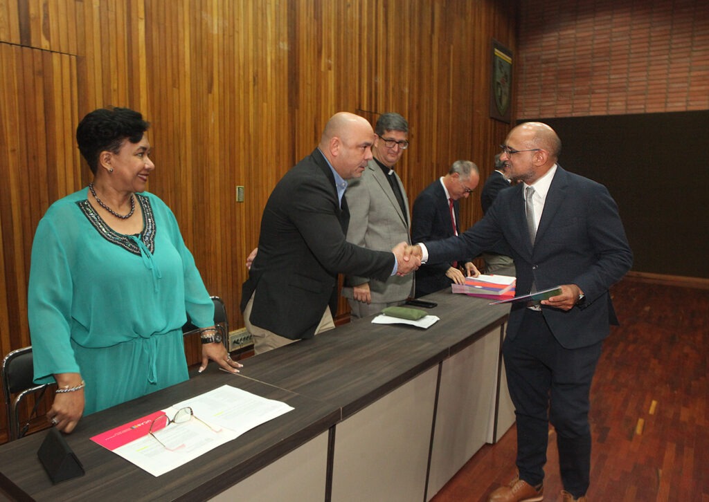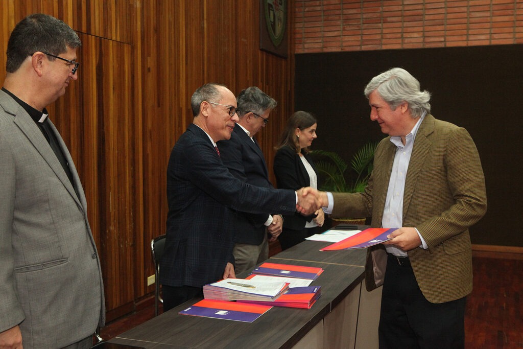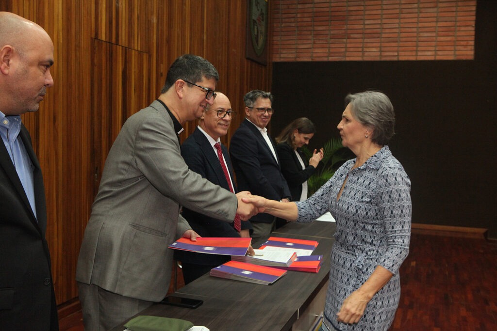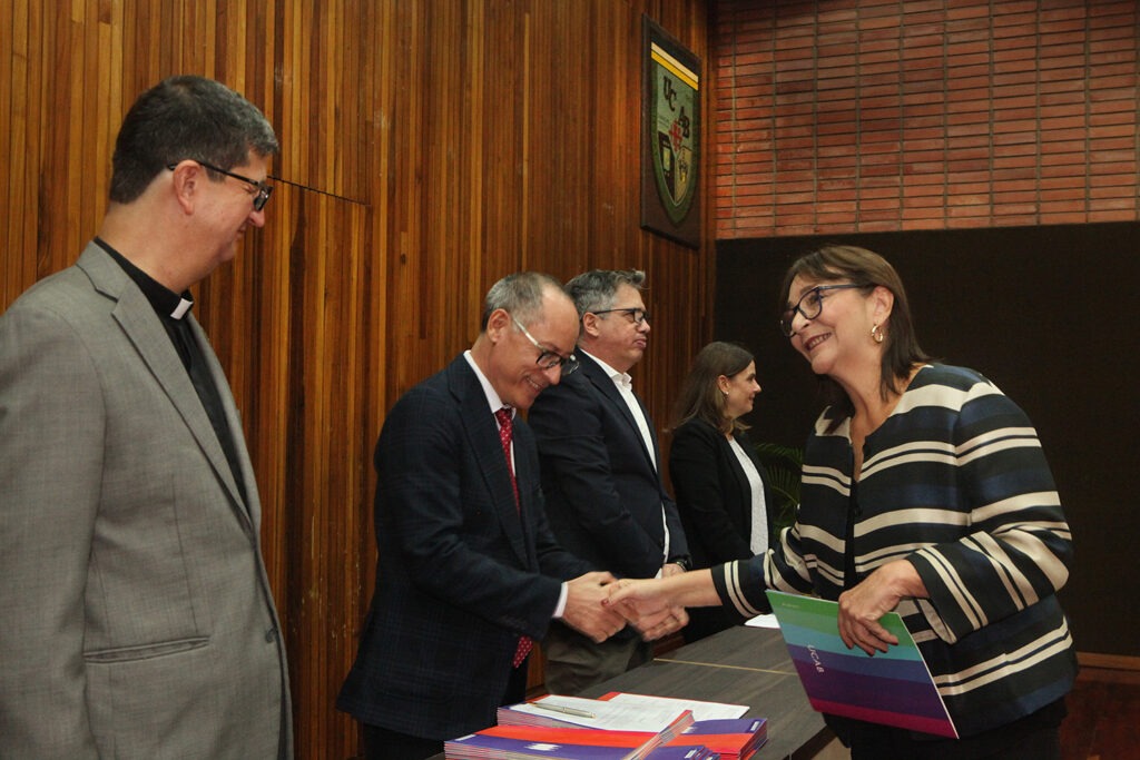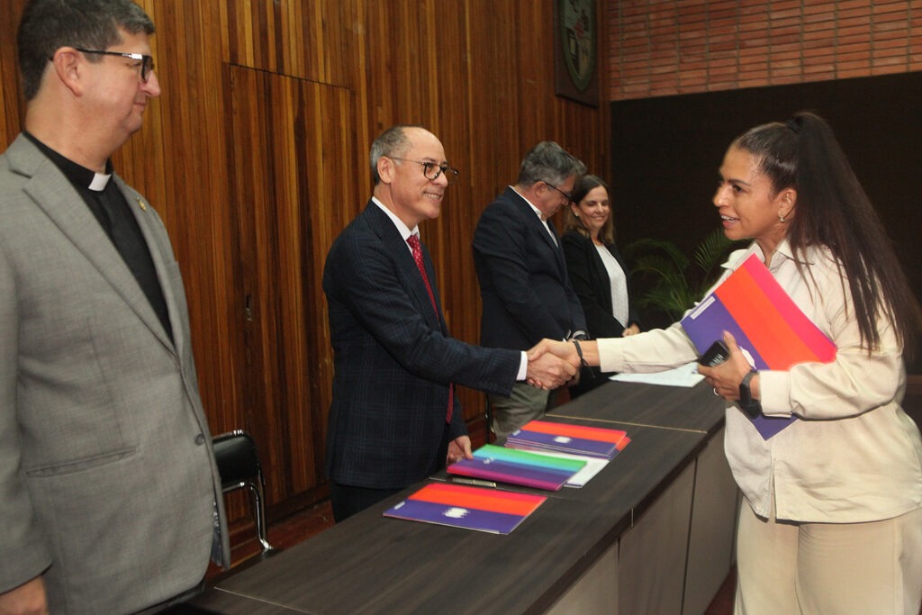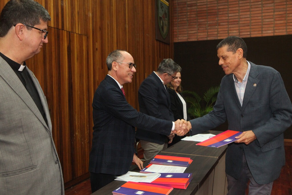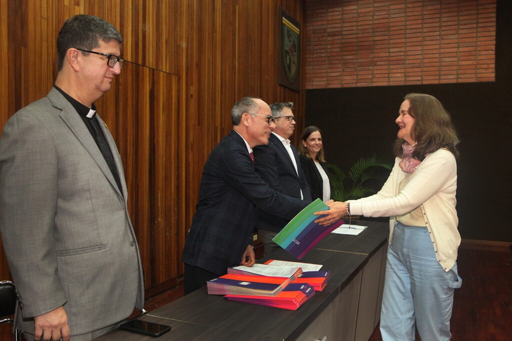 Presidieron el acto el rector Arturo Peraza, S.J.; Gustavo García, vicerrector administrativo; José Francisco Juárez, vicerrector académico; Néstor Luis Luengo, vicerrector de Identidad, Desarrollo Estudiantil y Extensión Social, y la secretaria general, Magaly Vásquez. Les acompañó Elizabeth (Betty) Fórmica, directora general de Recursos Humanos.