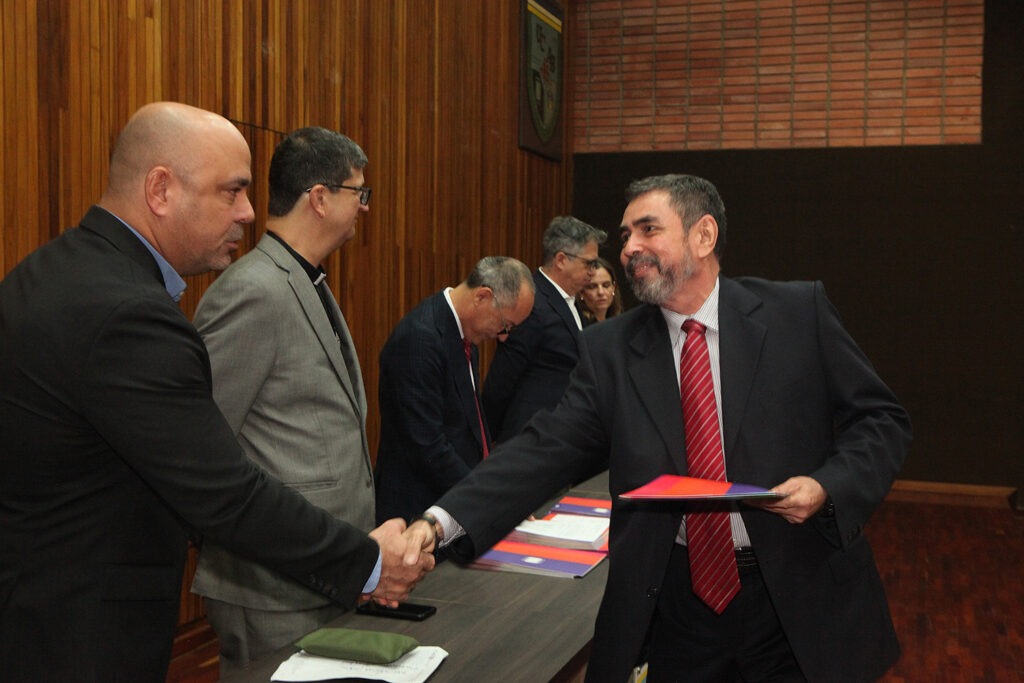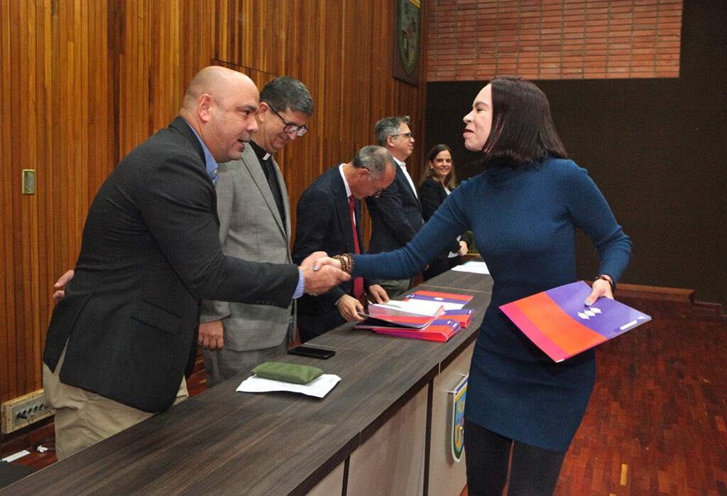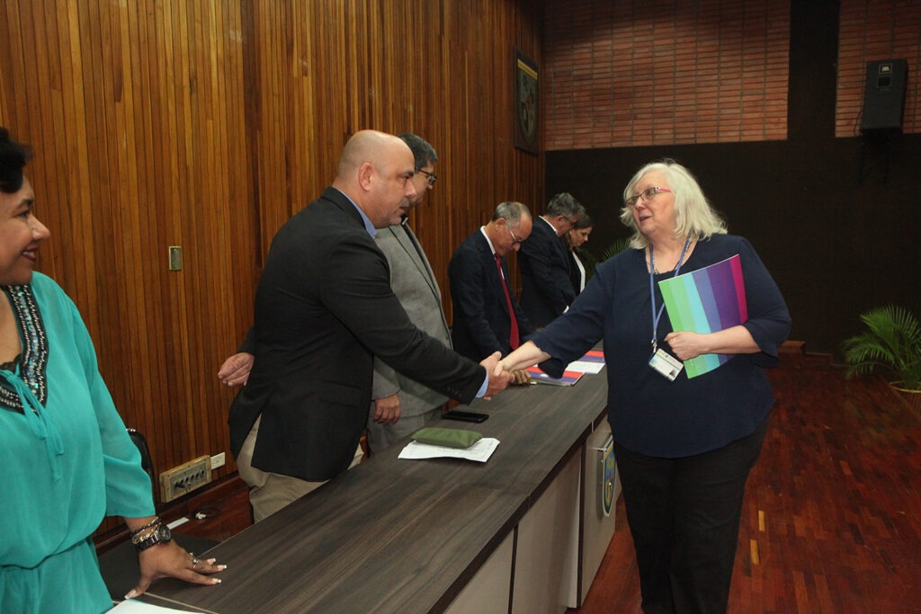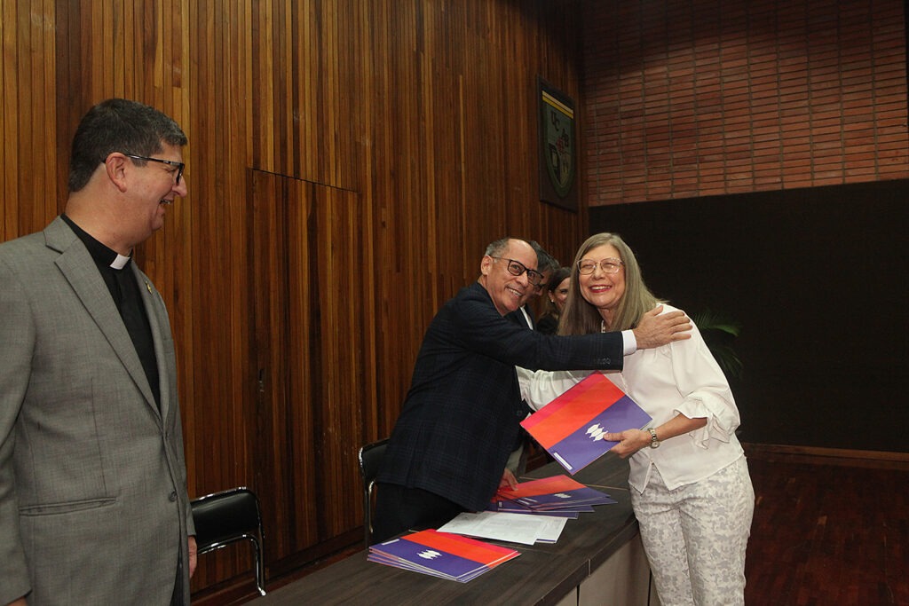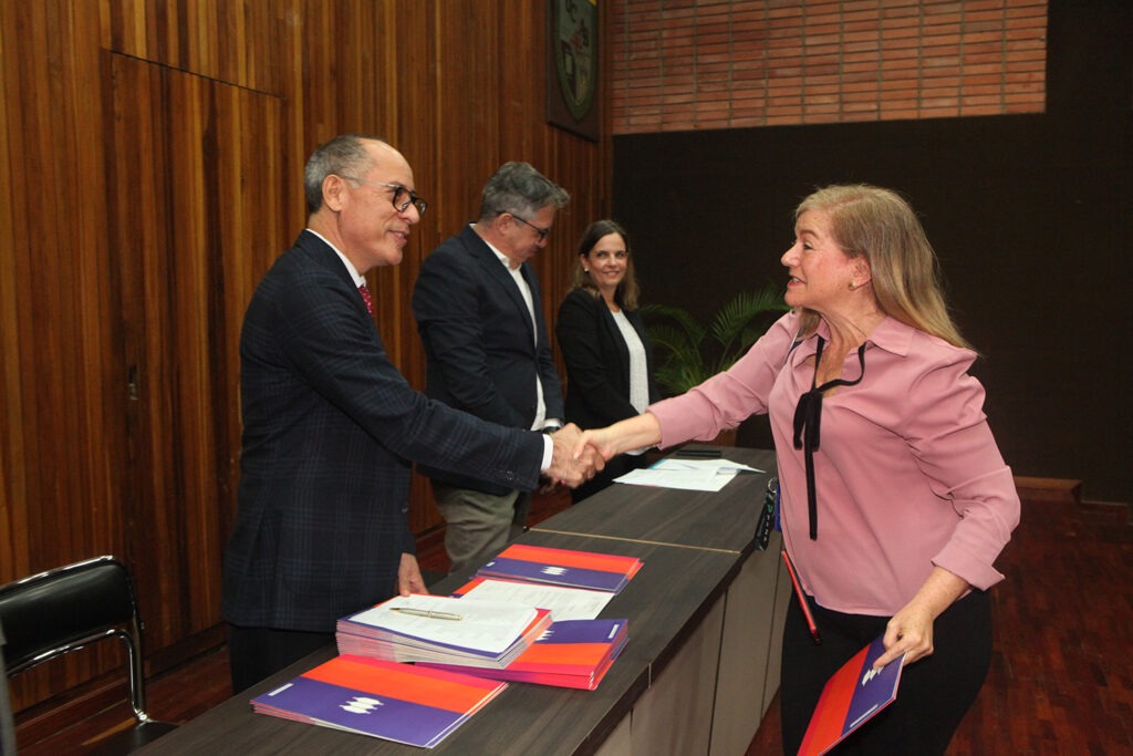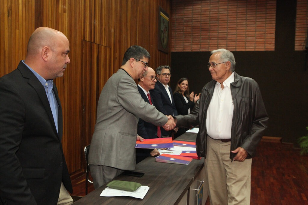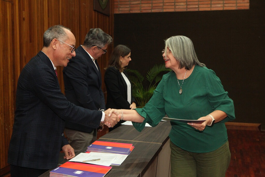 Presidieron el acto el rector Arturo Peraza, S.J.; Gustavo García, vicerrector administrativo; José Francisco Juárez, vicerrector académico; Néstor Luis Luengo, vicerrector de Identidad, Desarrollo Estudiantil y Extensión Social, y la secretaria general, Magaly Vásquez. Les acompañó Elizabeth (Betty) Fórmica, directora general de Recursos Humanos.