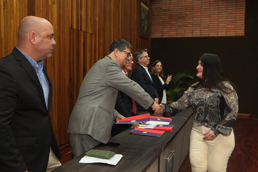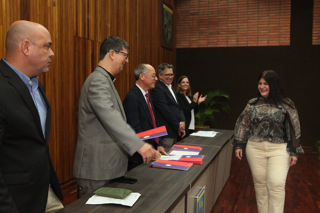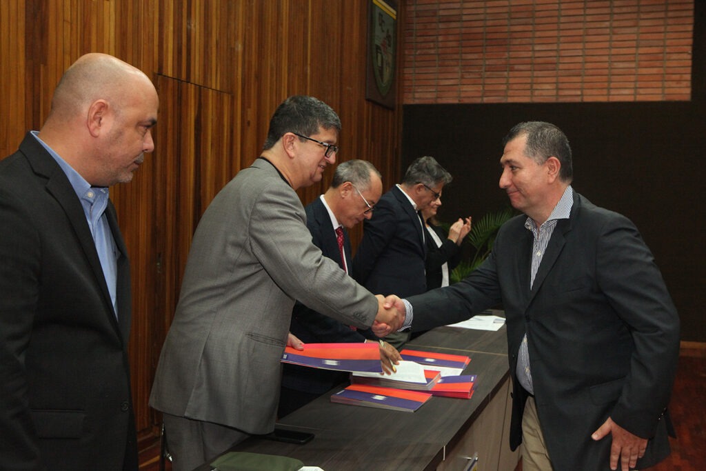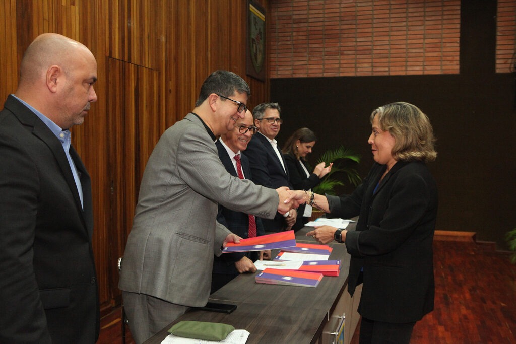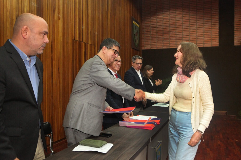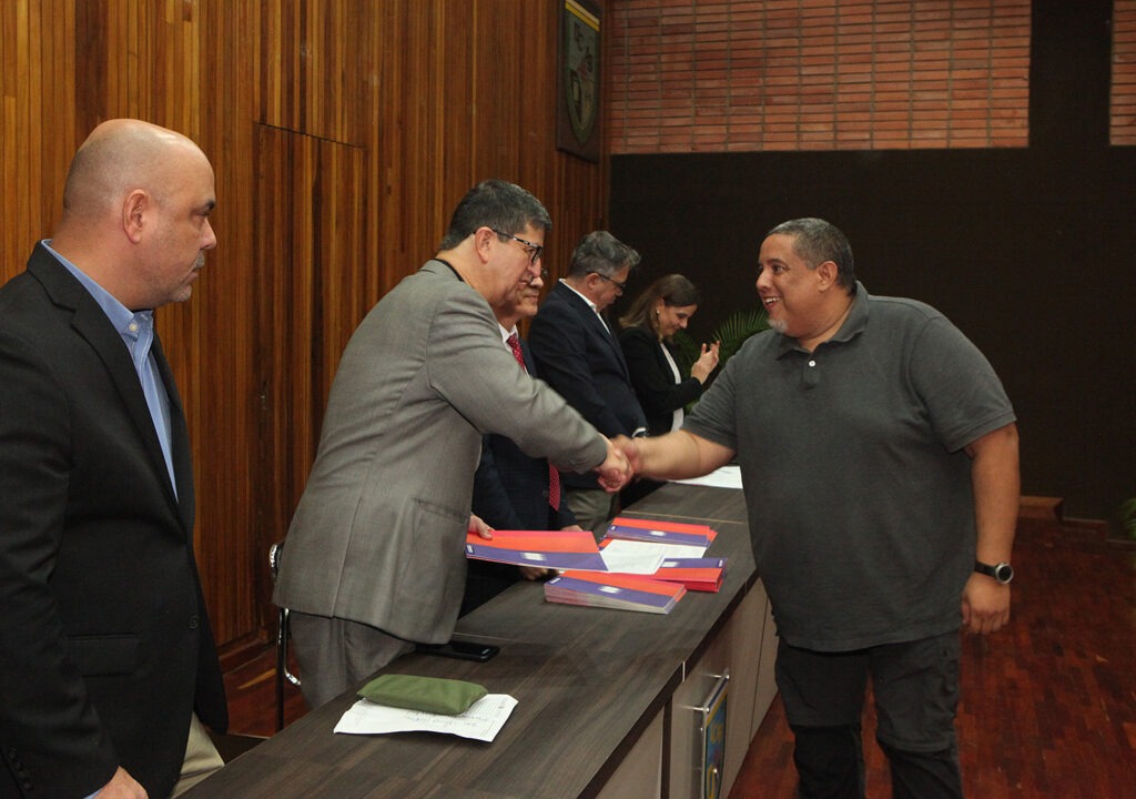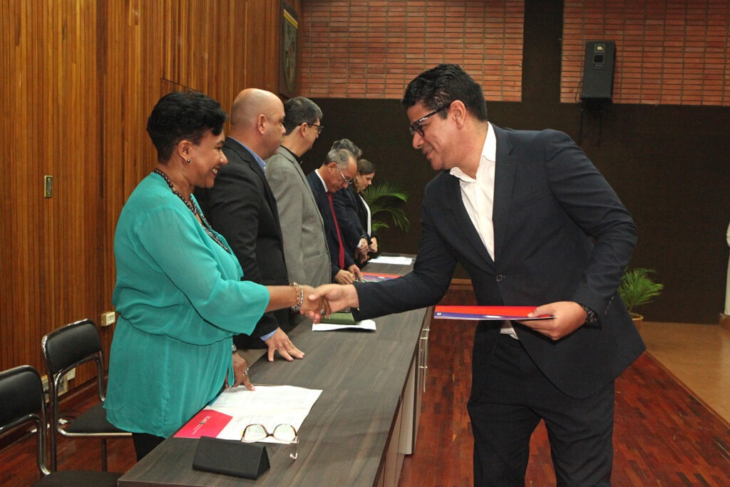 Presidieron el acto el rector Arturo Peraza, S.J.; Gustavo García, vicerrector administrativo; José Francisco Juárez, vicerrector académico; Néstor Luis Luengo, vicerrector de Identidad, Desarrollo Estudiantil y Extensión Social, y la secretaria general, Magaly Vásquez. Les acompañó Elizabeth (Betty) Fórmica, directora general de Recursos Humanos.