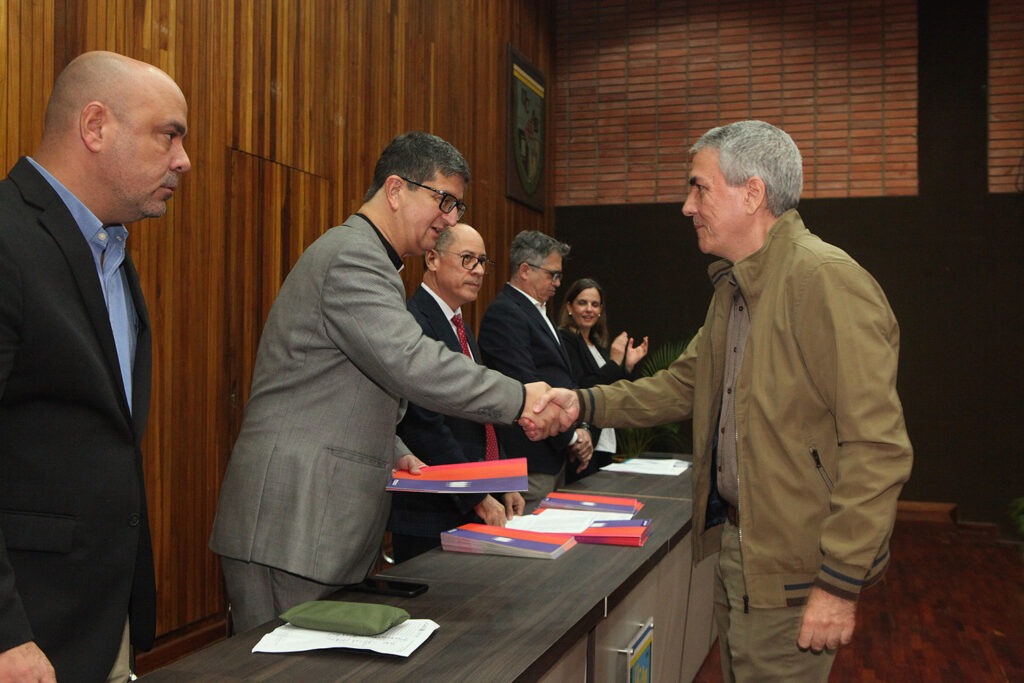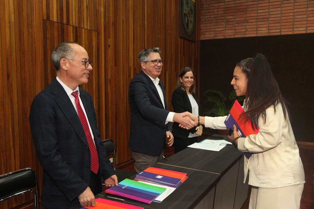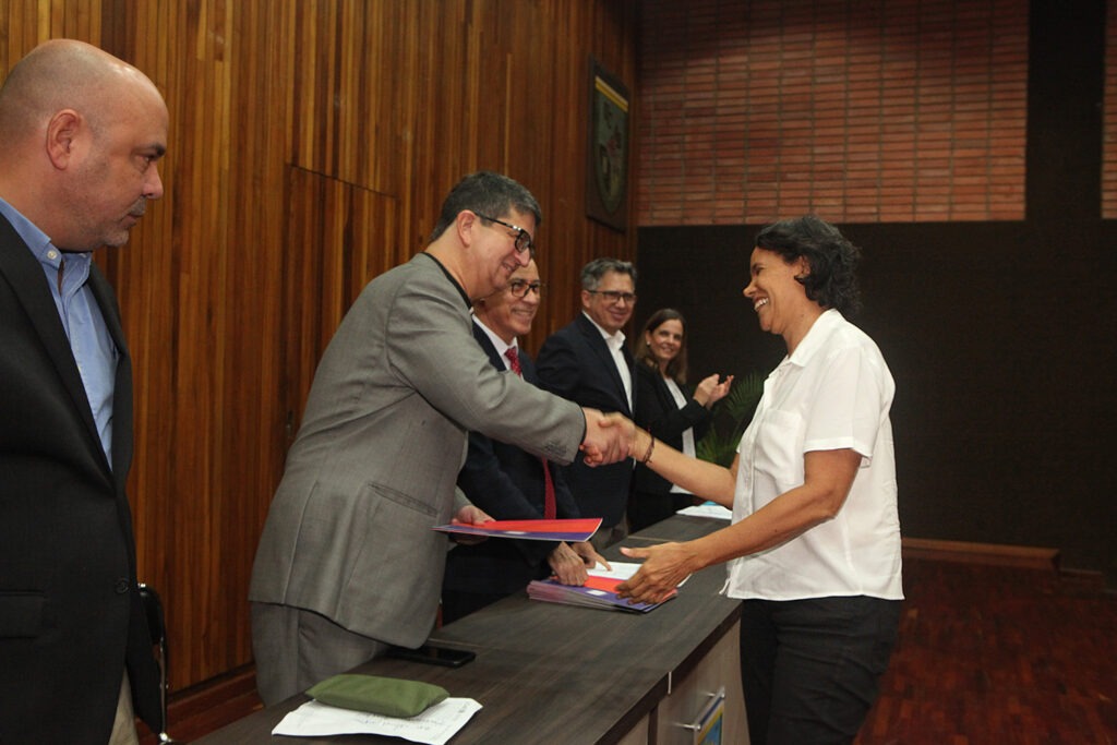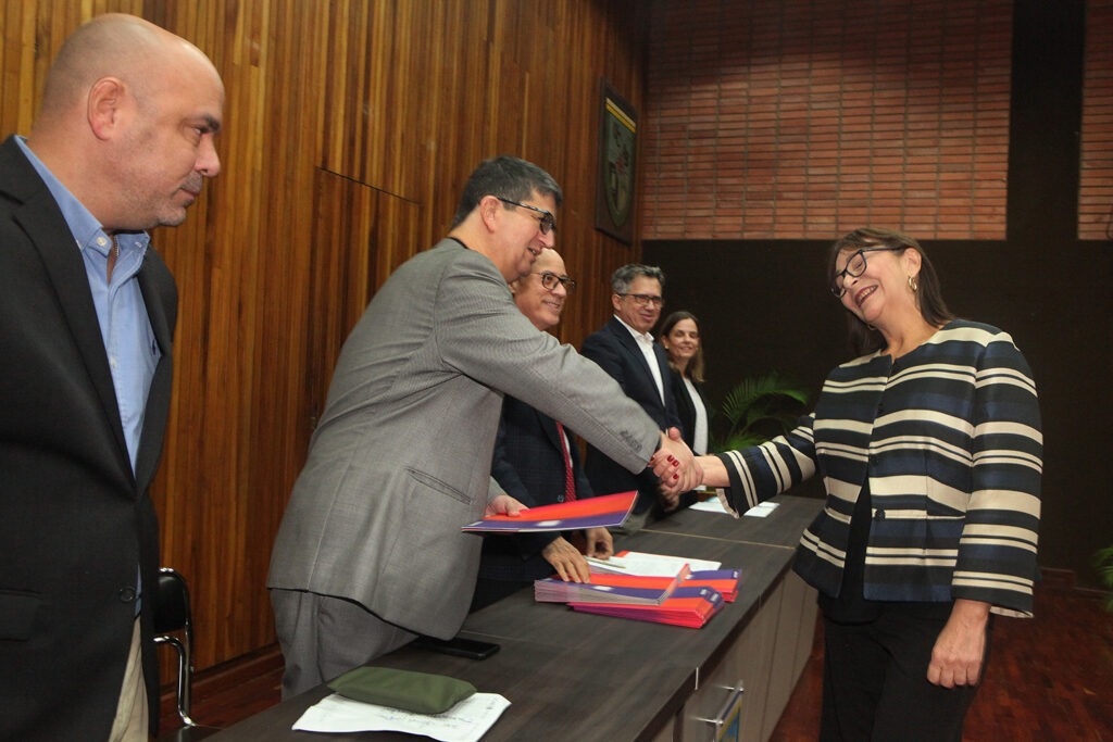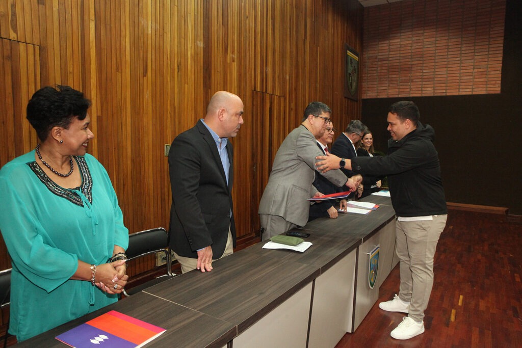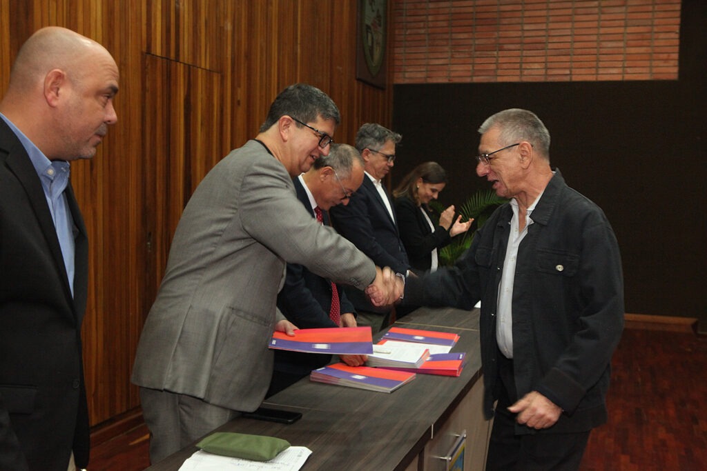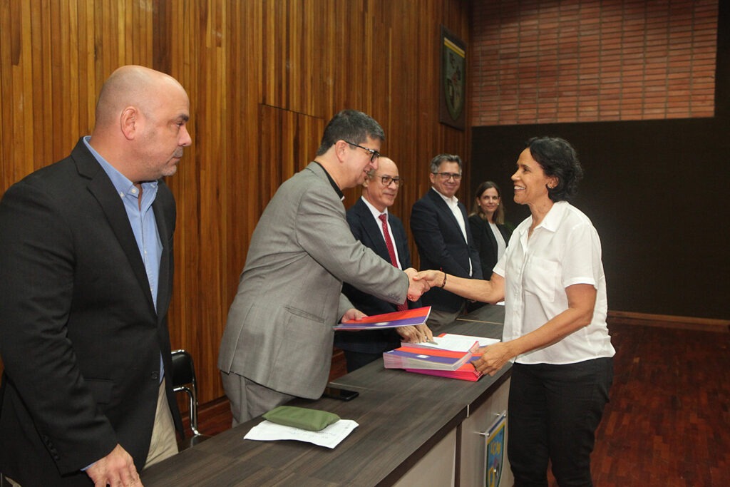 Presidieron el acto el rector Arturo Peraza, S.J.; Gustavo García, vicerrector administrativo; José Francisco Juárez, vicerrector académico; Néstor Luis Luengo, vicerrector de Identidad, Desarrollo Estudiantil y Extensión Social, y la secretaria general, Magaly Vásquez. Les acompañó Elizabeth (Betty) Fórmica, directora general de Recursos Humanos.