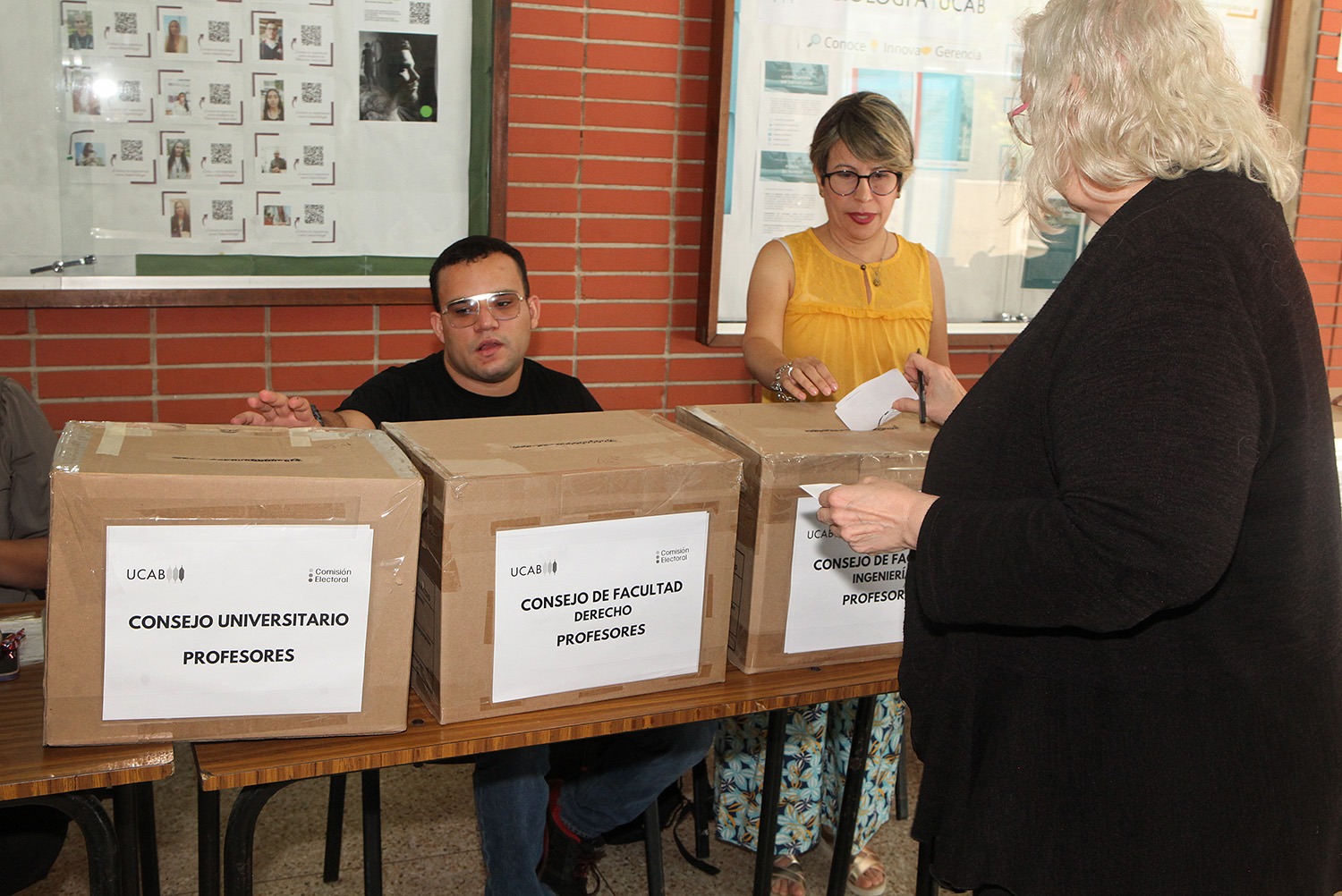 En los comicios, para los que se dispusieron mesas de votación en las sedes de Montalbán y Guayana, así como en el Instituto de Teología para Religiosos-ITER, en Altamira, los docentes y exalumnos escogieron a los 105 delegados ante el Consejo Universitario, el Consejo de Extensión, el Consejo General de Postgrado, los Consejos de Postgrado de las Facultades, los Consejos de Facultad y los Consejos de Escuela.