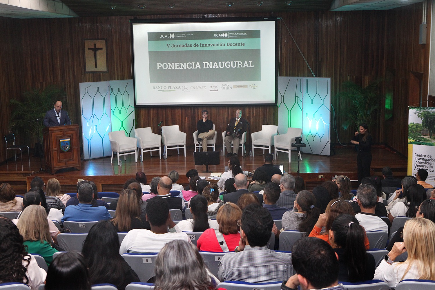 En el marco de las V Jornadas de Innovación Docente de la UCAB, el vicerrector administrativo, Gustavo García, destacó la necesidad de que los educadores superen el miedo a los cambios tecnológicos y redefinan su rol en un proceso de aprendizaje cada vez más colaborativo y autogestionado. Durante las jornadas se presentaron más de 60 ponencias sobre tendencias y buenas prácticas pedagógicas y de desarrollo curricular