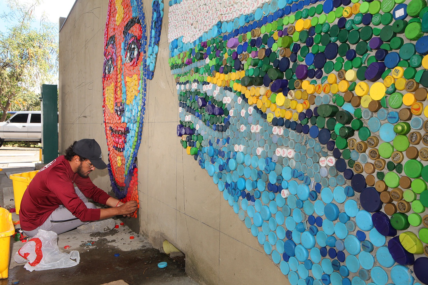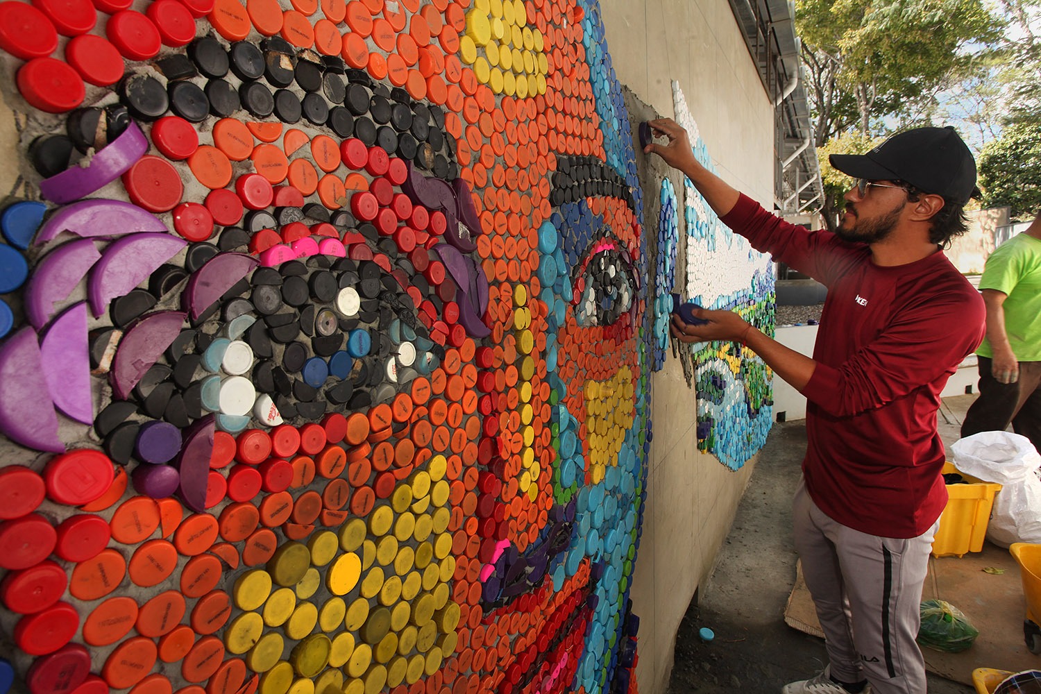 El artista e ilustrador de 28 años recalcó que los murales tienen como objetivo «reutilizar y darnos cuenta de que cada una de esas tapas es, realmente, basura, pero estamos viendo cómo podemos transformarla en algo más. En todos los elementos de la vida cotidiana que, a veces, ignoramos hay oportunidades ocultas para transformarnos y transformar».
