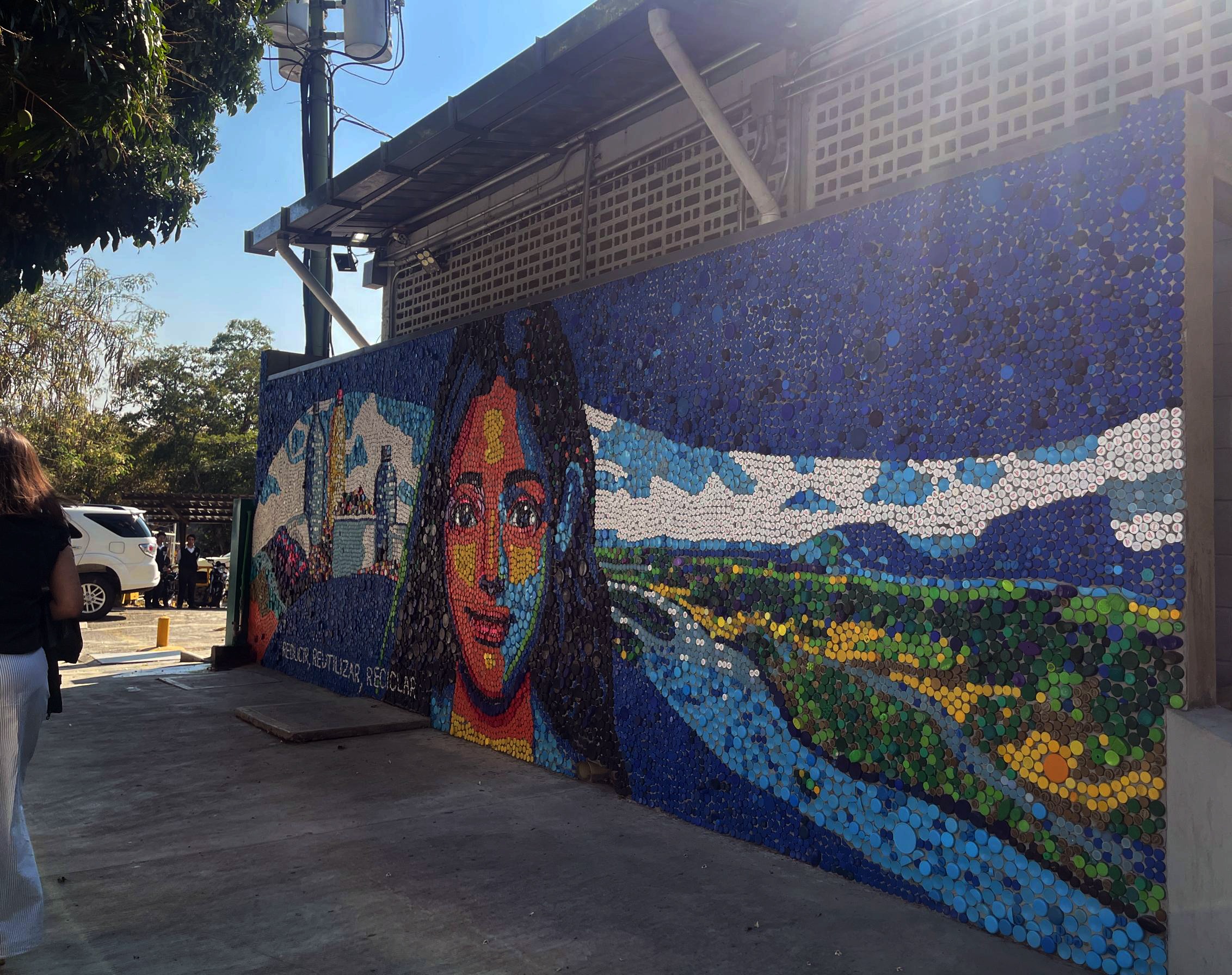 El martes 11 de marzo se inauguraron oficialmente los tres murales que adornan el bulevar de acceso al Aula Abierta UCAB Recicla, espacio del campus Montalbán donde opera una planta para moler, procesar y convertir botellas plásticas PET en materia prima reutilizable, y se ofrece educación a estudiantes y comunidades sobre desarrollo sostenible.