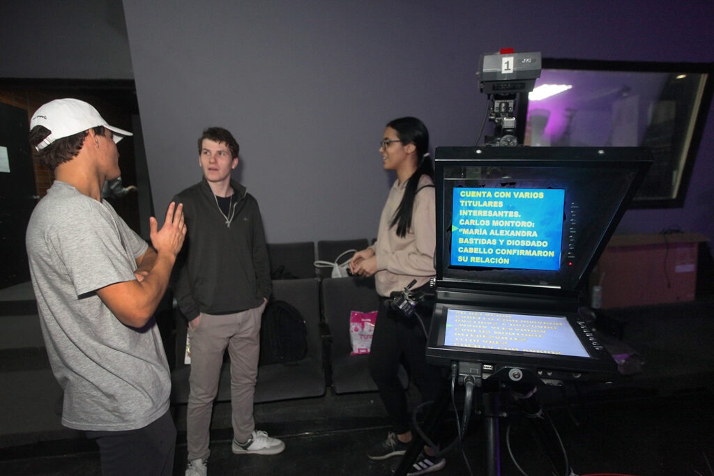 Bajo los focos de colores, entre el mar de cables y el movimiento de las cámaras, el grito «Silencio en el set» resuena en el estudio de televisión de la UCAB, alertando a los alumnos presentes que comenzó el trabajo para el que fueron convocados.