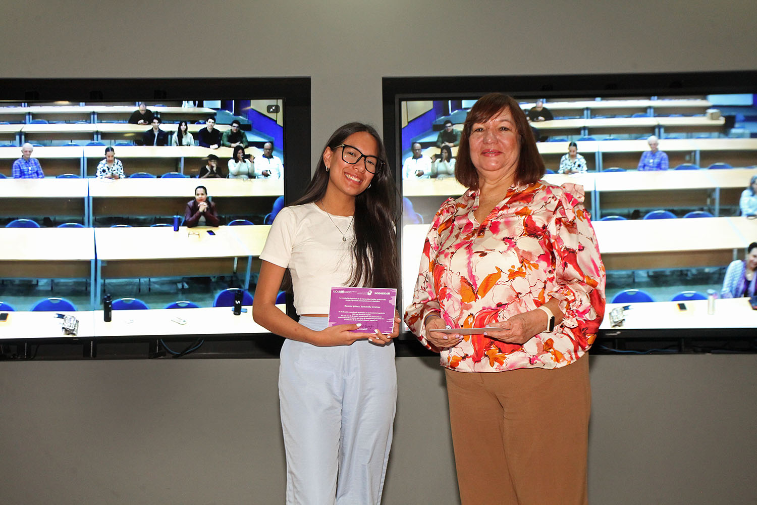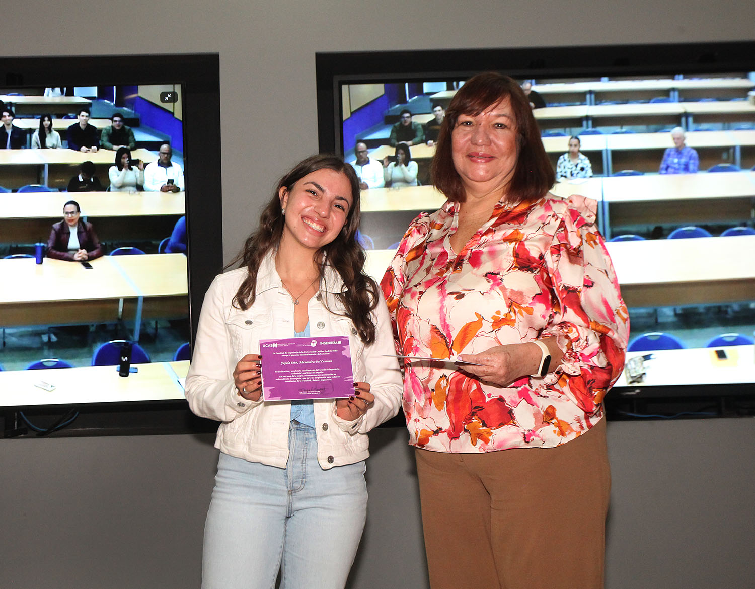 Estuvieron acompañadas por Magaly Vásquez, secretaria de la UCAB y jefa de la Cátedra; Mayra Narváez, decana de de Ingeniería, y José Francisco Juárez, vicerrector académico de la universidad.
