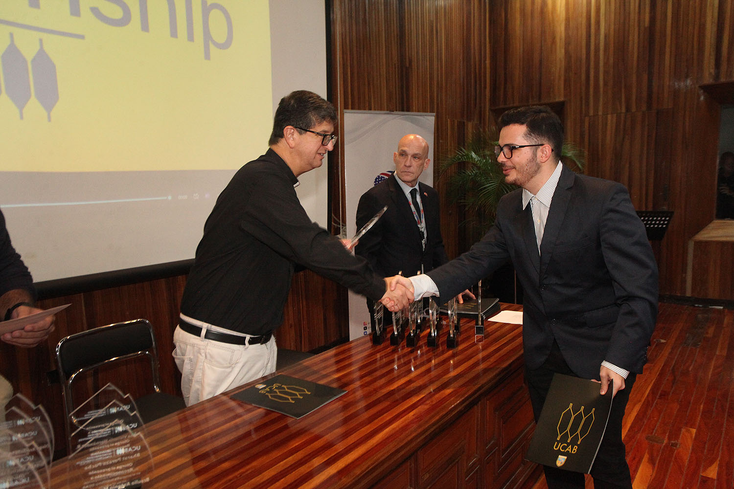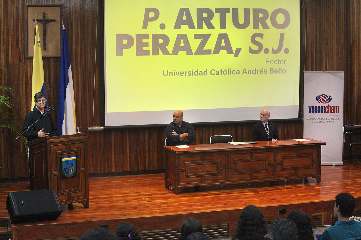 El acto de certificación fue encabezado por el rector y el vicerrector de la universidad, Arturo Peraza y Gustavo García, respectivamente, quienes estuvieron acompañados por representantes de VenAmCham.