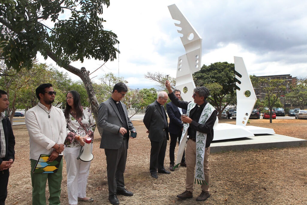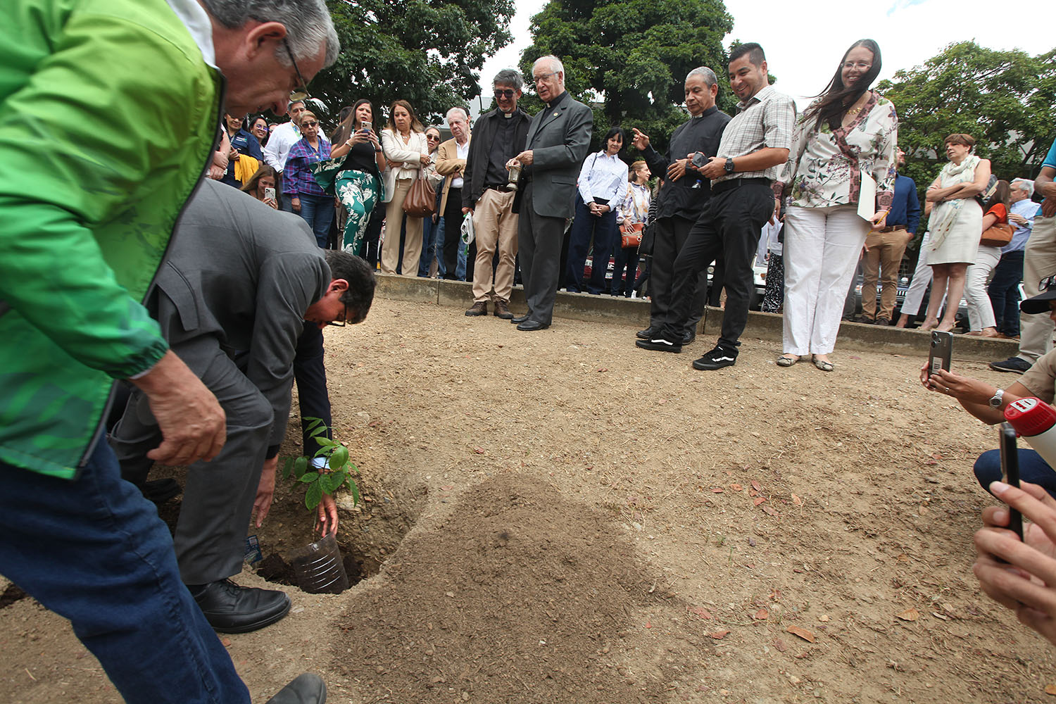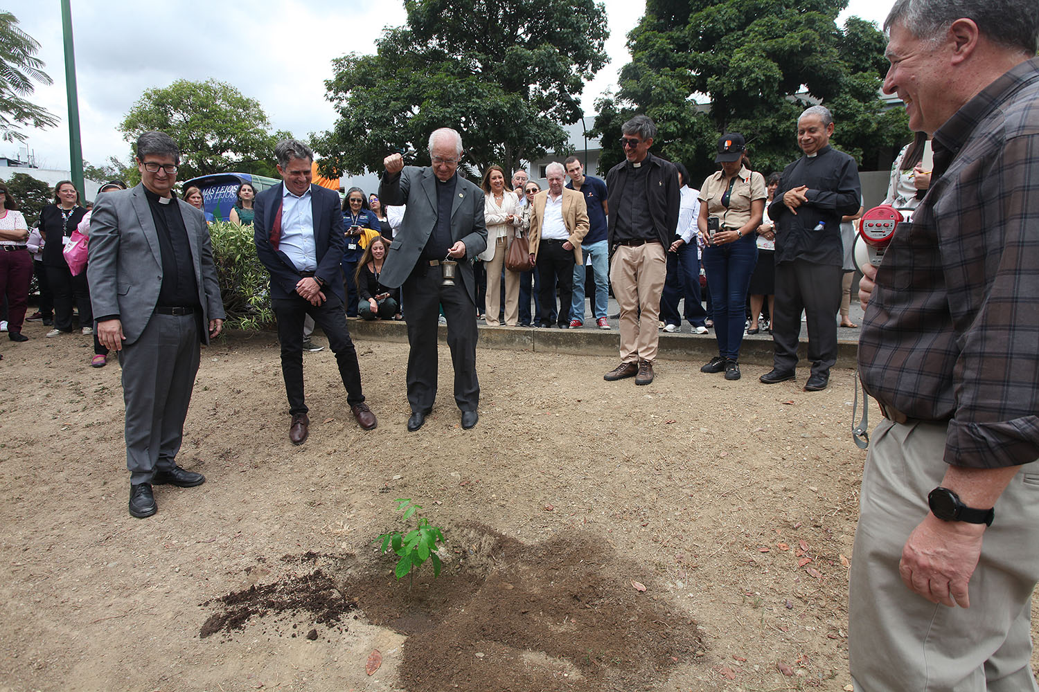 En primer lugar, fueron plantados cinco árboles en uno de los patios, todos donados por el Instituto Municipal de Ambiente Chacao (IMAC). El último de ellos, una especie conocida como indio desnudo, fue dispuesto sembrado por las autoridades de la universidad y bendecido por el padre Luis Ugalde.