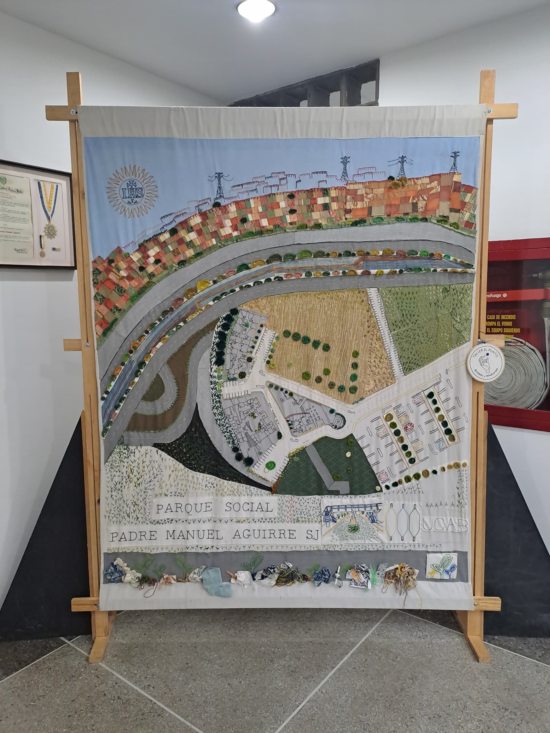 También se elaboró un gran tapiz inspirado en el mapa del Parque Social, confeccionado por más de 206 personas que participaron en las jornadas de bordado colectivo, llevadas a cabo durante toda la semana.