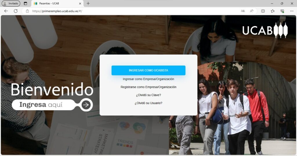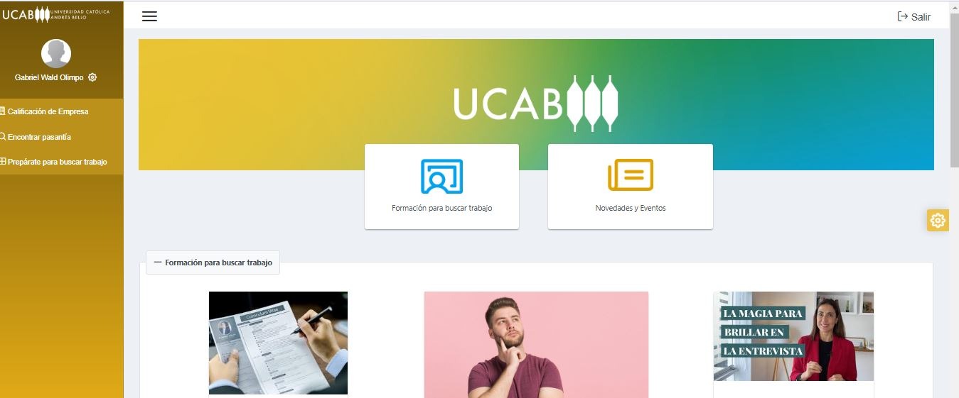 De acuerdo con el vicerrector administrativo de la UCAB, Gustavo García, el portal busca adaptarse a esta realidad, pero a la vez poner a disposición de los estudiantes la oportunidad de personalizar, tanto como sea posible, el proceso de búsqueda de pasantías o primeros trabajos, de manera que puedan encontrar vacantes que se ajusten a sus preferencias y necesidades.