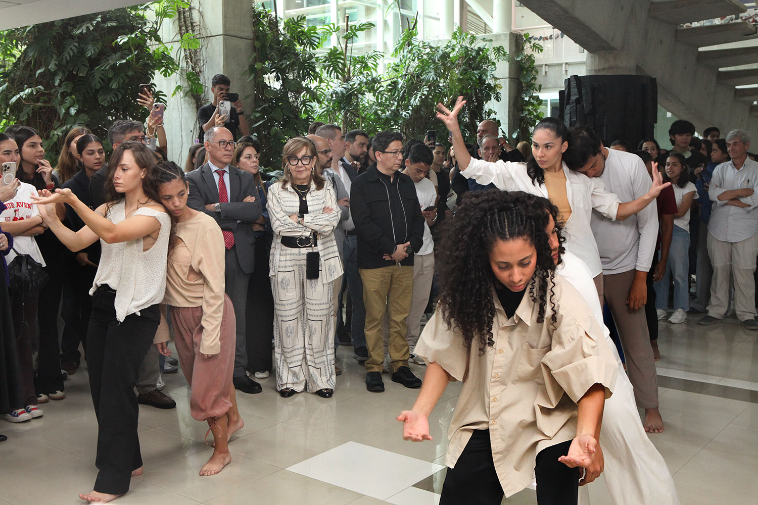 Durante la inauguración de la exposición, los asistentes pudieron apreciar una perfomance a cargo de un grupo de bailarines de la Escuela Nacional de Danza.