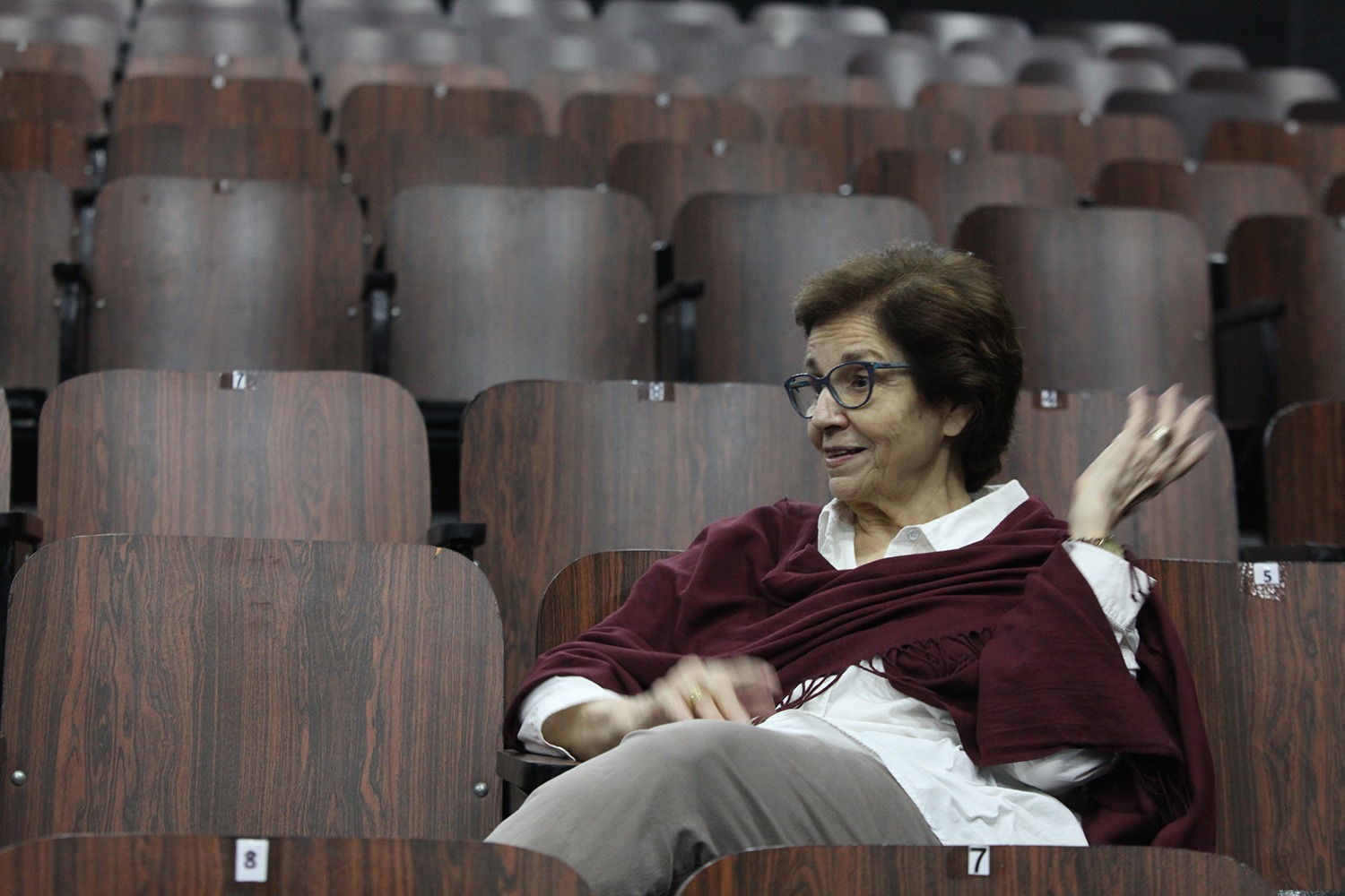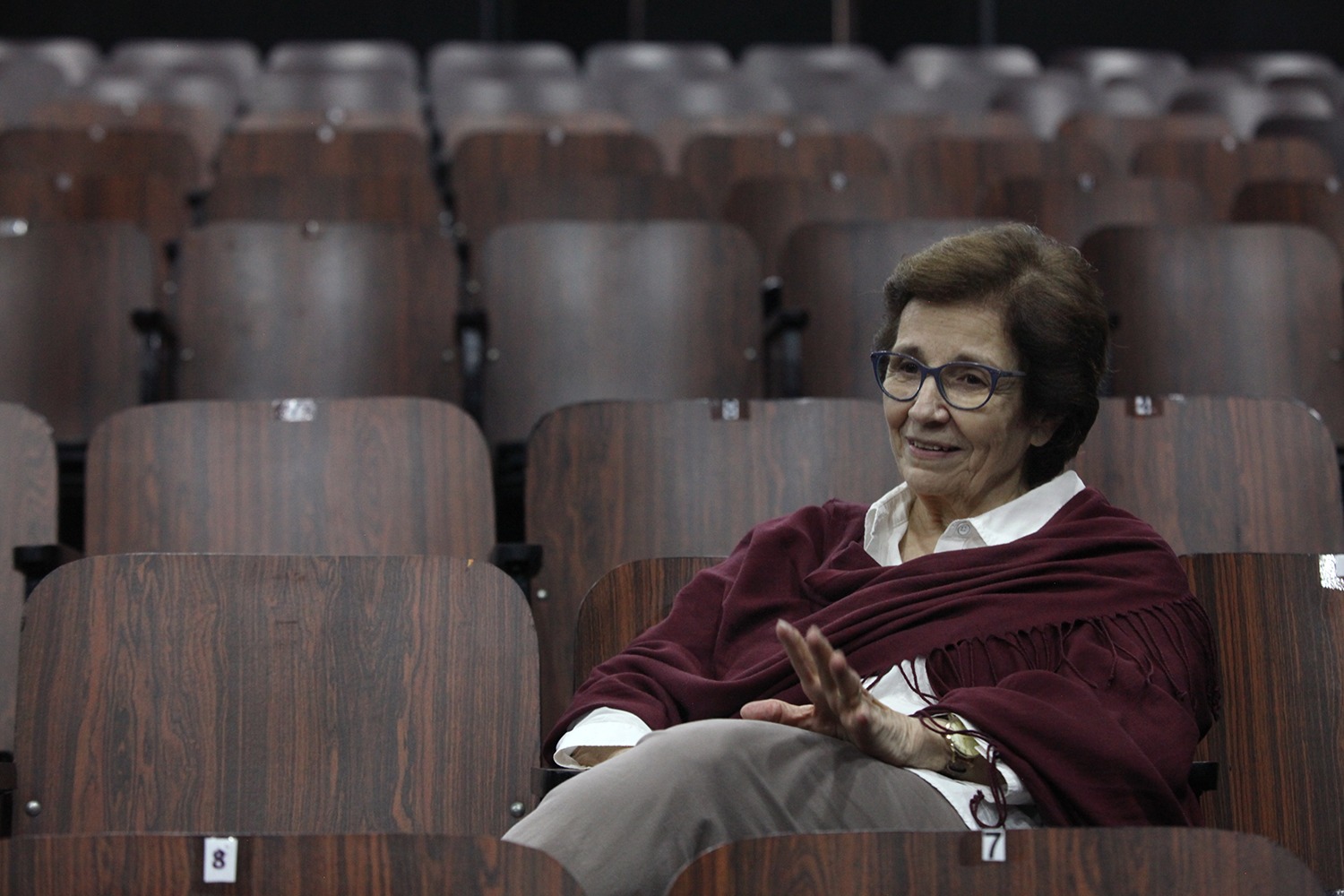 Aquella señora que está sobre el escenario, en medio de un ensayo general y dando directrices a los actores y técnicos, tiene 77 años de edad, pero es dueña de un temple que desafía calendarios.