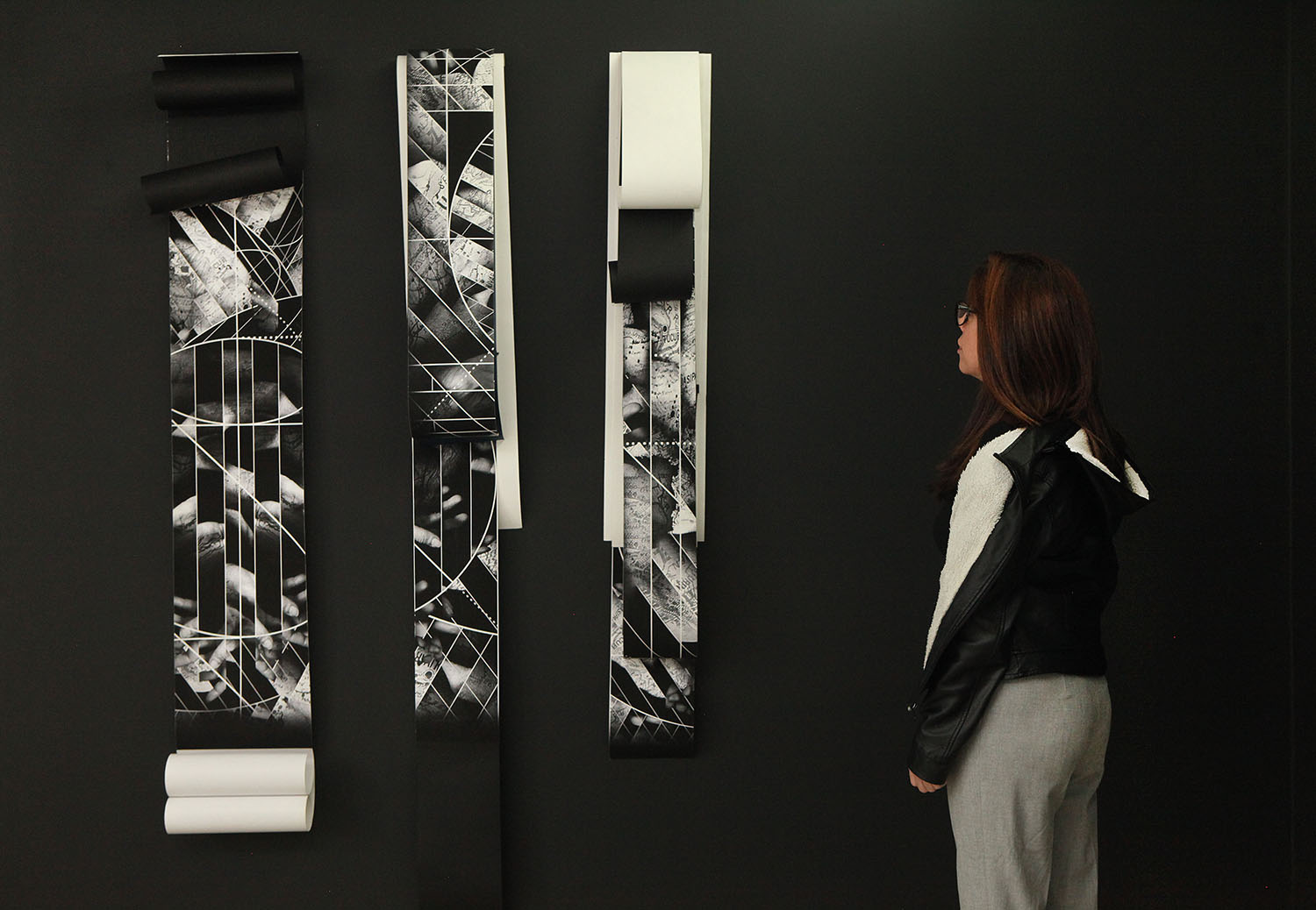 Karim Borjas, artista formado en Venezuela, Francia y España, presenta tres series («L’envol», «Las corcheas» y «El absurdo cotidiano») para que los visitantes reinterpreten -a su manera- el valor de las obras bibliográficas más allá de la materialidad. Para la directora de la biblioteca, Mabel Calderín, las piezas son una metáfora en defensa de la lectura y del libro como objeto cultural
