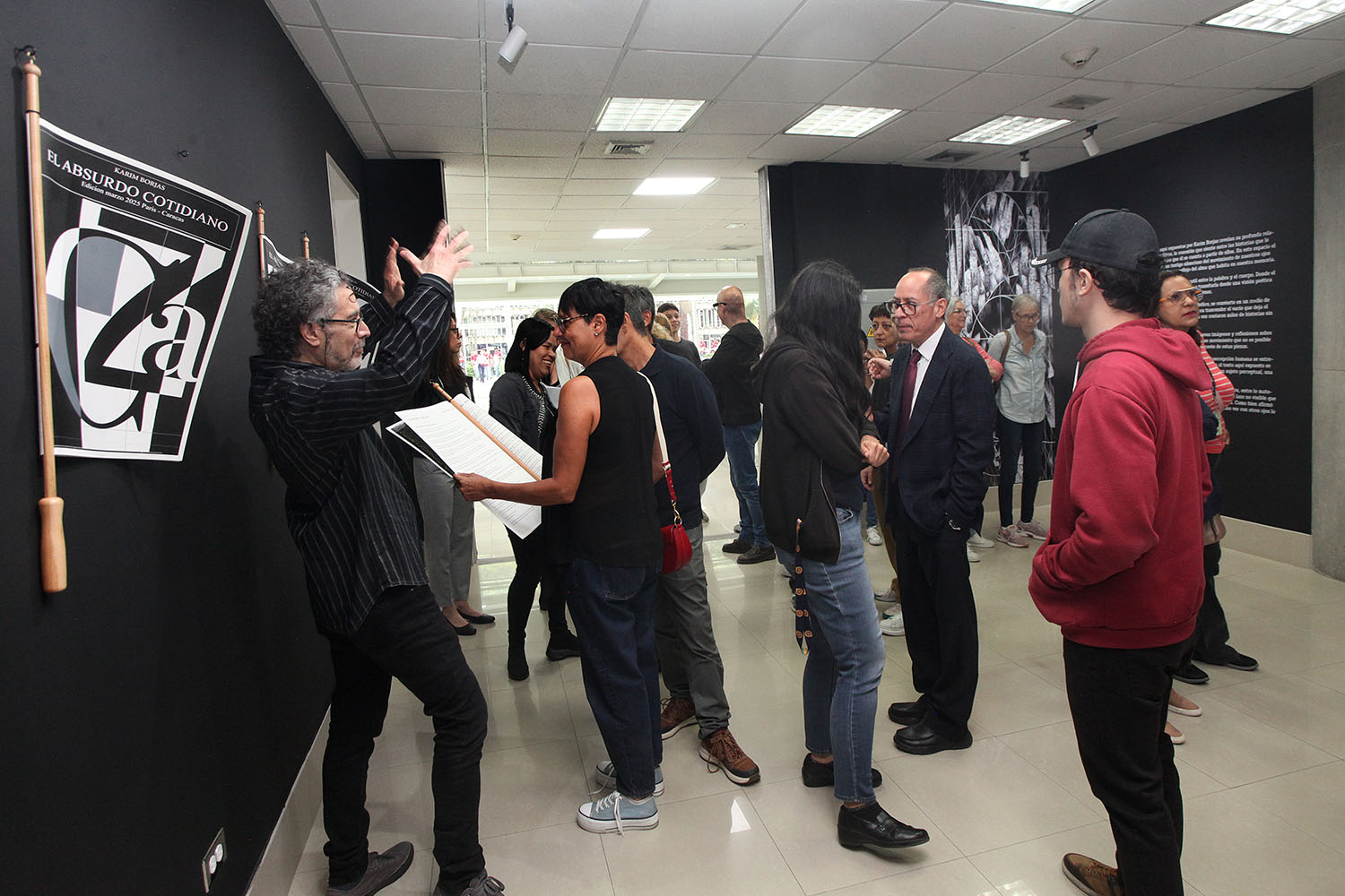«Están aquí concentradas las historias que yo sacaba de los periódicos porque estaban llenos de absurdo. Uno se sorprendía de lo que leía, ¿qué locura es esa? Y en mi cabeza hago una historia de lo que acabo de leer, me imagino qué sucedió», recalcó el artista durante la inauguración, a la que asistieron autoridades académicas, representantes de la Dirección General de Cultura, Biblioteca UCAB, además de profesores y estudiantes.
