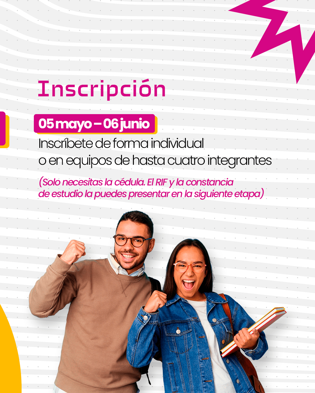No podrán participar estudiantes inactivos, personal docente, administrativo u obrero de las universidades, colaboradores de Suiche 7B, empleados de entidades bancarias ni familiares de estudiantes.