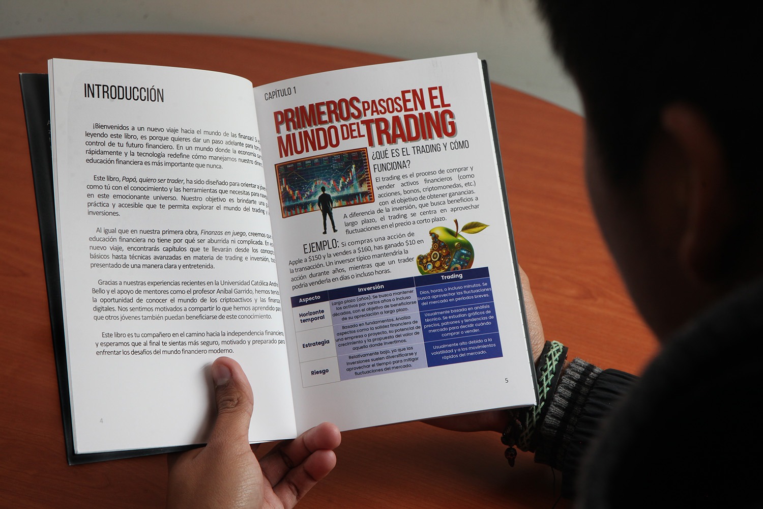 «Este libro ha sido diseñado para orientar a jóvenes como tú con el conocimiento y las herramientas que necesitas para navegar en este emocionante universo. Nuestro objetivo es brindarte una guía práctica y accesible que te permita explorar el mundo del trading y las inversiones», indican los autores en la introducción de la publicación.