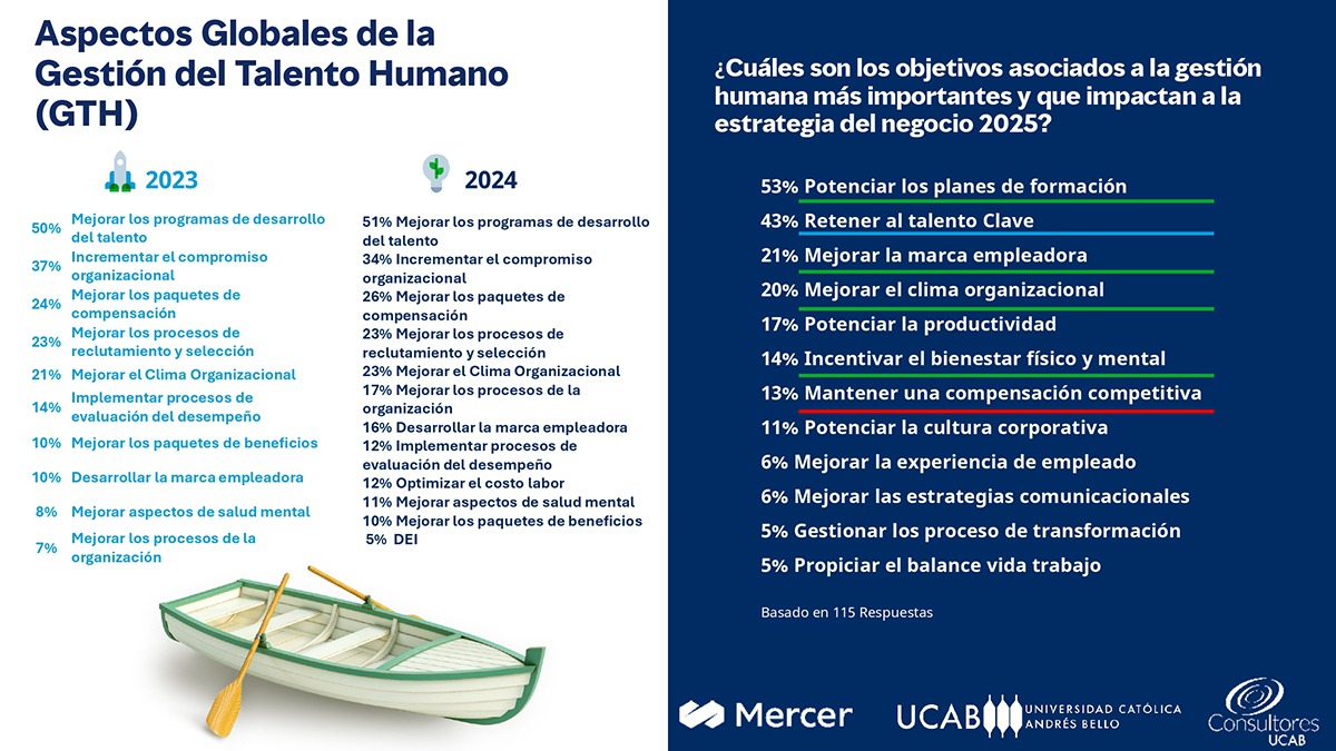 Así lo evidencia la Encuesta UCAB-Mercer 2025 sobre tendencias en manejo del talento humano en Venezuela, elaborada por la Escuela de Ciencias Sociales de la UCAB, la empresa internacional Mercer y la unidad de servicios profesionales Consultores UCAB.