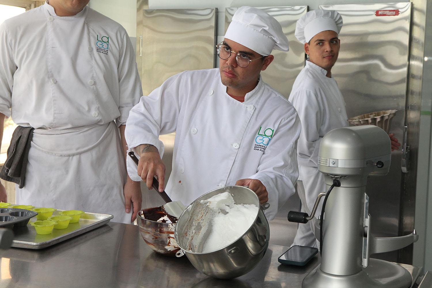 Al calor del fuego, el chocolate se derrite a baño de María y el azúcar se transforma lentamente en caramelo. En las cocinas de la Academia de Gastronomía UCAB-Plaza’s (LAGA), los alumnos de la primera cohorte de la Certificación de Pasteleroestudian y practican lo aprendido una y otra vez.