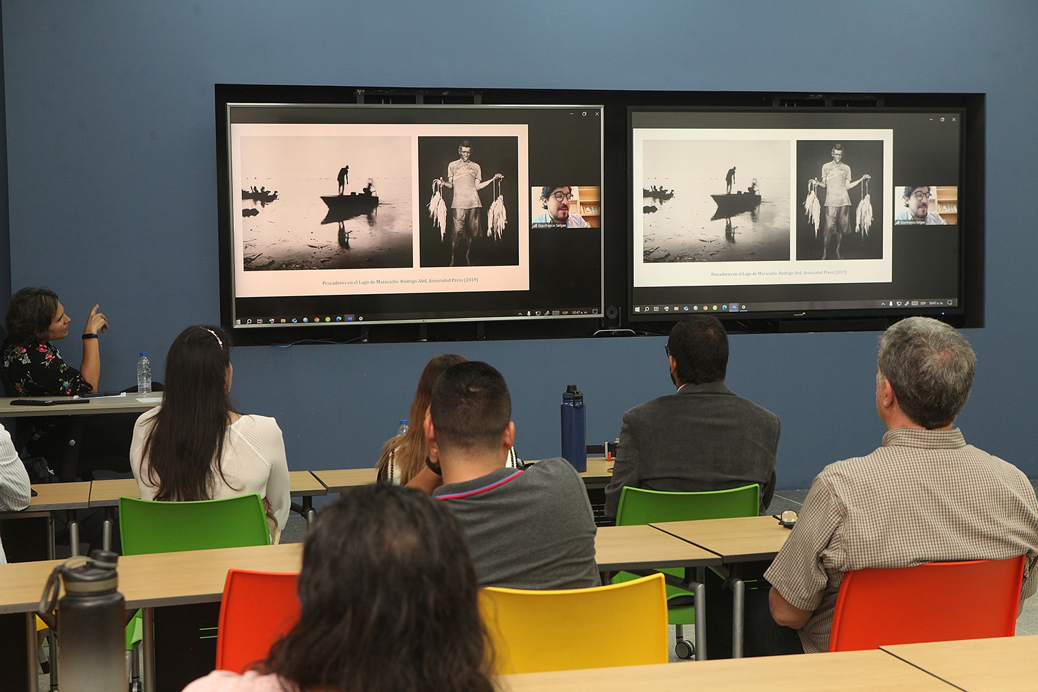 «Tesis sobre las humanidades ambientales: Venezuela en la encrucijada del cambio climático» fue el título de la exposición, transmitida por Zoom y seguida por el público presente en el edificio de Postgrado con la plataforma de las aulas tecnológicas.