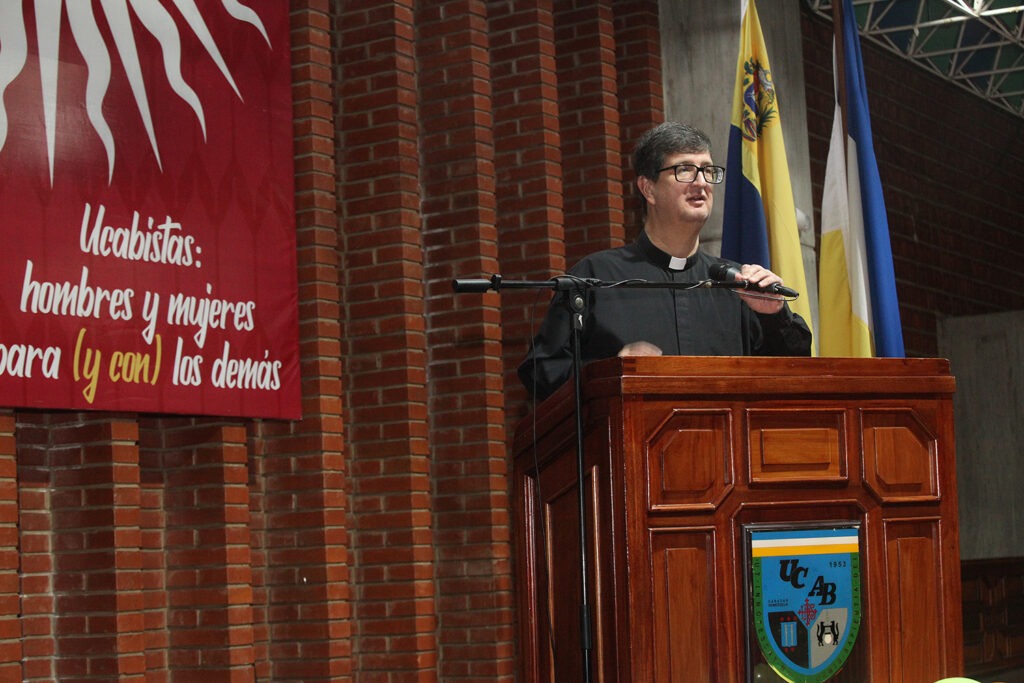 La jornada se inició con una reflexión por parte del rector de la UCAB, el padre Arturo Peraza, S.J., quien hizo un análisis sobre los retos que afronta la humanidad para superar múltiples problemas globales, como la crisis climática y las confrontaciones bélicas en Europa y Asia.