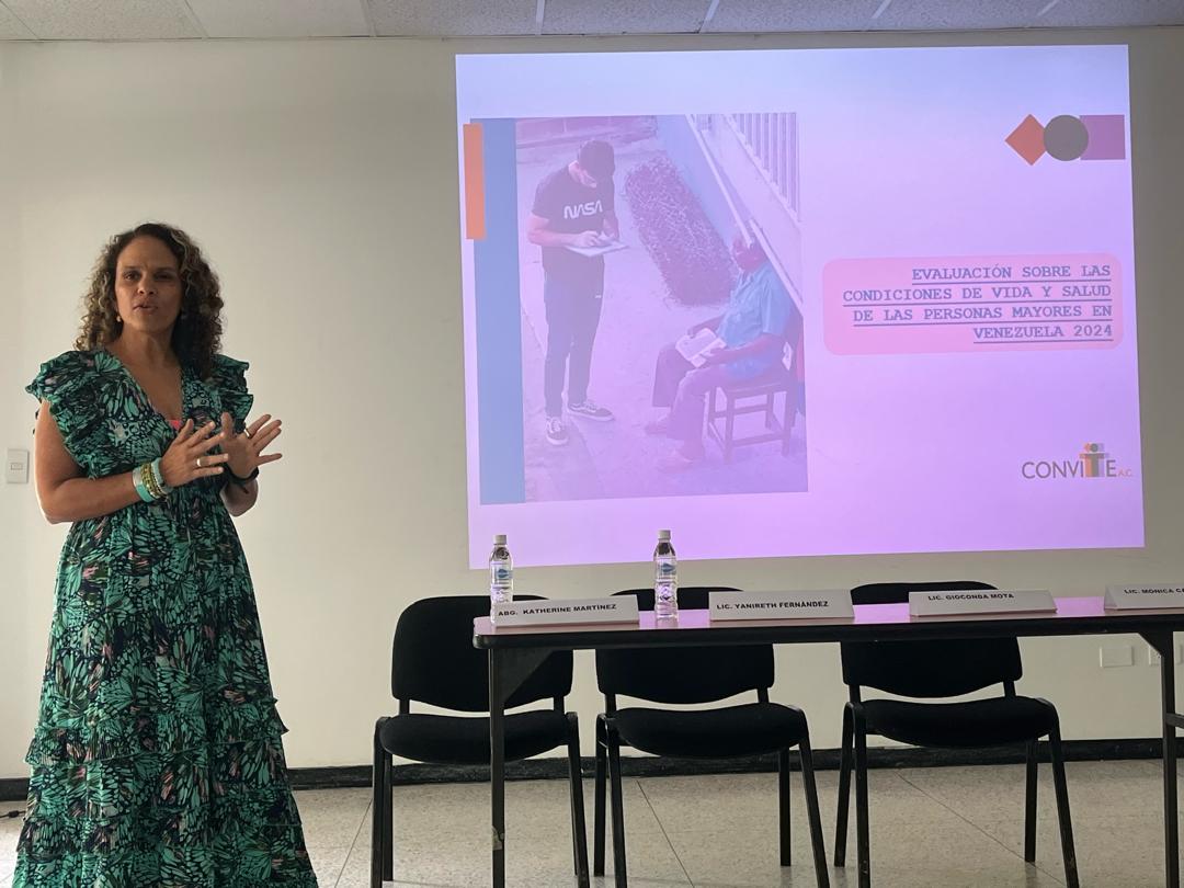 La crisis social en Venezuela produce impactos diferenciados, sobre todo en la población de adultos mayores, millones de ellos pensionados en Venezuela, pero sin poder adquisitivo. Así lo reflejan los resultados del estudio de la organización Convite, presentado en el evento de la Clínica Jurídica de la UCAB por la coordinadora de Investigación de la ONG, Yanireth Fernández.