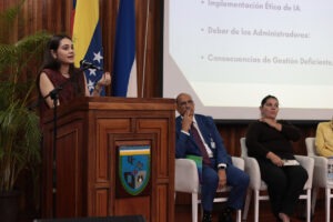 La penúltima intervención fue la de la Universidad Monteávila (UMA), la cual presentó dos exposiciones en el área de la ética: «El impacto de la tecnología e inteligencia artificial en la ética» y «La responsabilidad civil de la inteligencia artificial referente a daños causados por chatbots».