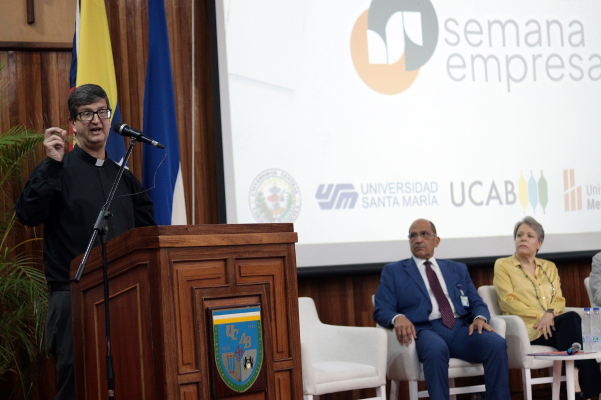 El encuentro interuniversitario, que se llevó a cabo en el marco de la Semana Empresarial UCAB 2025, contó con la presencia del rector y la secretaria de la unviersidad, Arturo Peraza, S.J., y Magaly Vasquez.