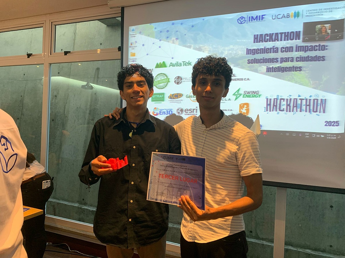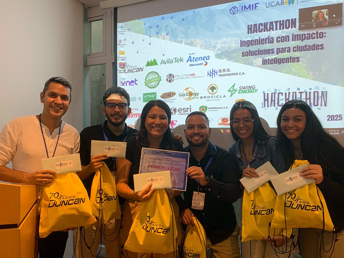 Un sistema de prevención de riesgos por deslizamiento en viviendas de zonas populares, una app para localizar contenedores de desechos urbanos y un aplicativo para gestionar y reservar espacios públicos y privados en la ciudad fueron las tres propuestas ganadoras del Hackathon universitario «Ingeniería con impacto: soluciones para ciudades inteligentes», organizado por el Centro de Investigación y Desarrollo de Ingeniería (CIDI) de la UCAB, con apoyo de la Iniciativa Mundial Ingeniería del Futuro (IMIF).