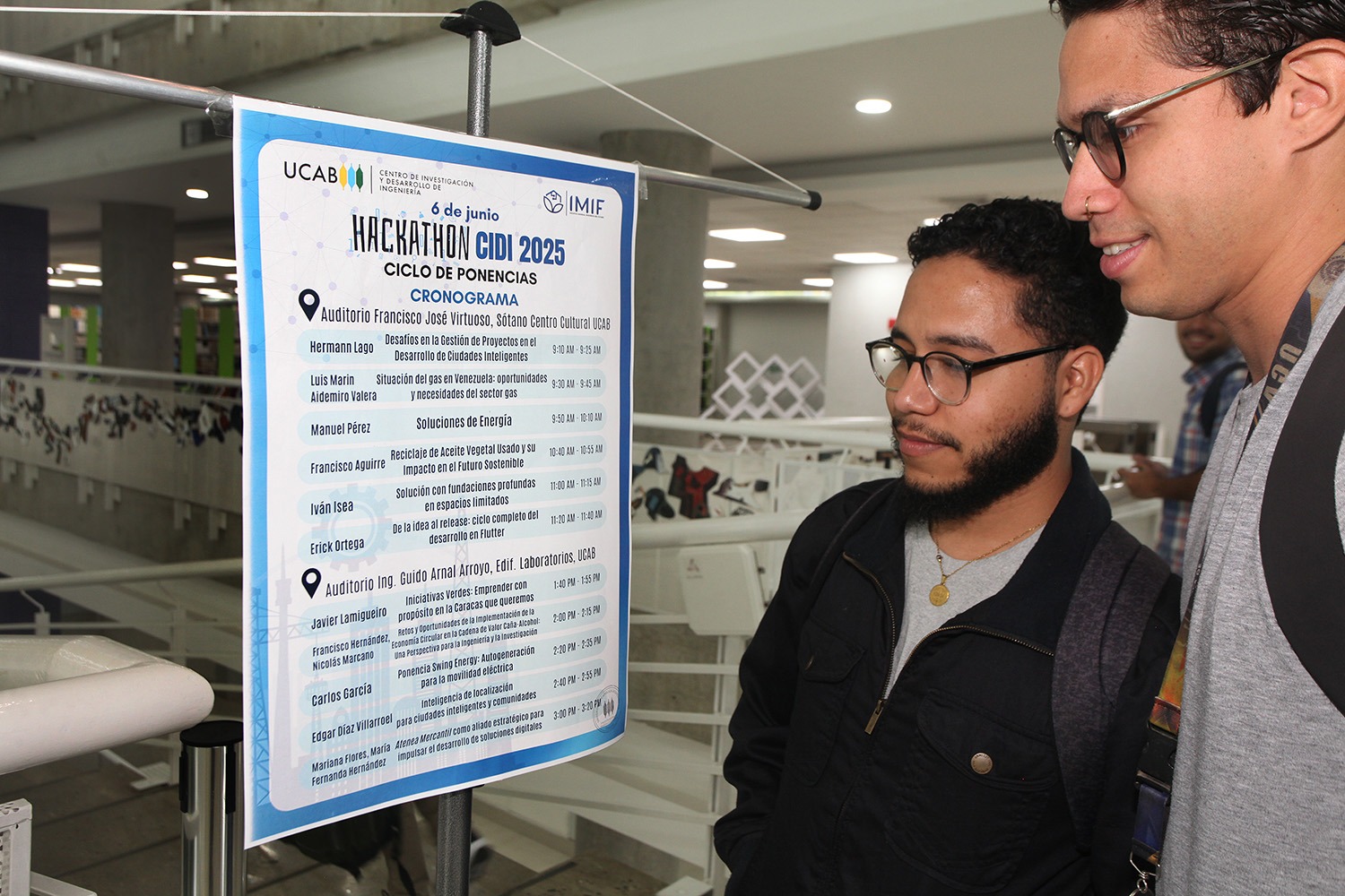 Agrupados en 12 equipos (siete en la UCAB Montalbán y cinco en la UCAB Guayana), los participantes del Hackathon CIDI UCAB 2025 trabajaron, durante ocho horas, en salones dispuestos para ello. En ese lapso idearon, diseñaron y afinaron sus propuestas tecnológicas, las cuales debían hacer énfasis en asuntos como sostenibilidad, gestión urbana, servicios públicos y transformación digital.