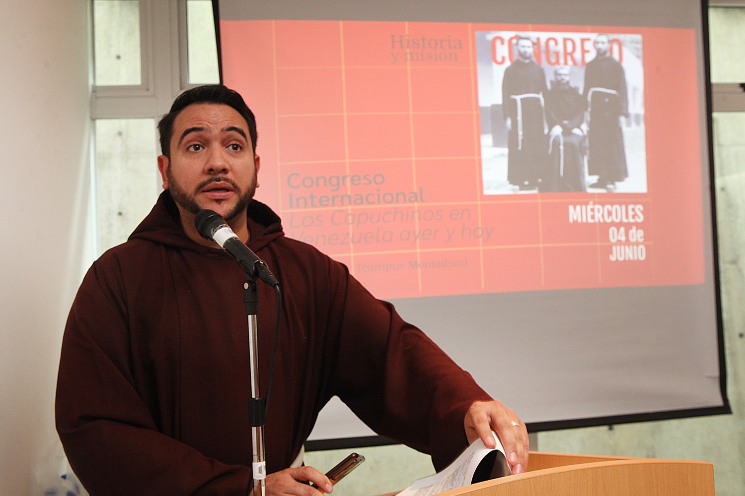 La orden religiosa de los capuchinos en Venezuela celebró en la UCAB, del 4 al 5 de junio, su Congreso Internacional de Historia Misionera, el cual repasó la labor evangelizadora, cultural y social desarrollada en suelo venezolano por los miembros de esta congregación católica, desde la llegada, en 1650, del fray capuchino oriundo de Aragón, Francisco de Pamplona, y la incursión que siete años después ejecutaron capuchinos catalanes y aragoneses en territorios de los actuales estados Sucre, Monagas y Delta Amacuro.