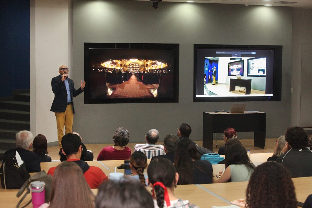El profesor Jaime Bello-León, crítico musical y director general de Comunicación, Mercadeo y Promoción de la universidad, ofreció la conferencia «Ópera y filosofía», en la cual repasó la evolución de este género y su vinculación con las reflexiones de su tiempo. Aseguró que, en medio de los cambios tecnológicos y sociales del siglo XXI, «estamos en un momento de reflorecimiento del repertorio operístico»